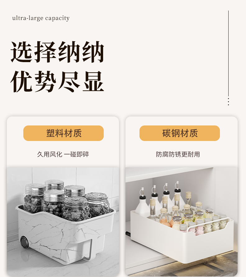 纳纳橱柜拉篮厨房下水槽抽拉式置物架柜内抽屉式收纳盒调料收纳筐