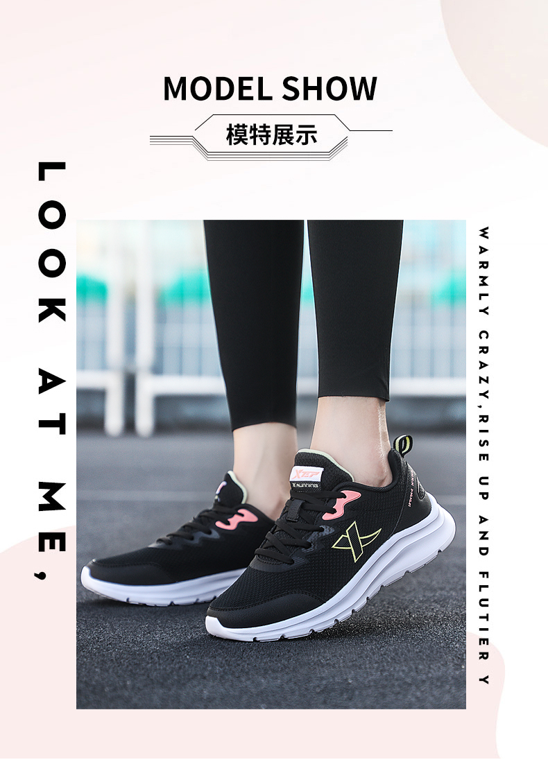 特步女鞋跑步鞋网面透气2025新款夏季正品黑色休闲鞋子潮女运动鞋