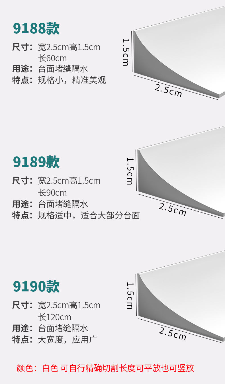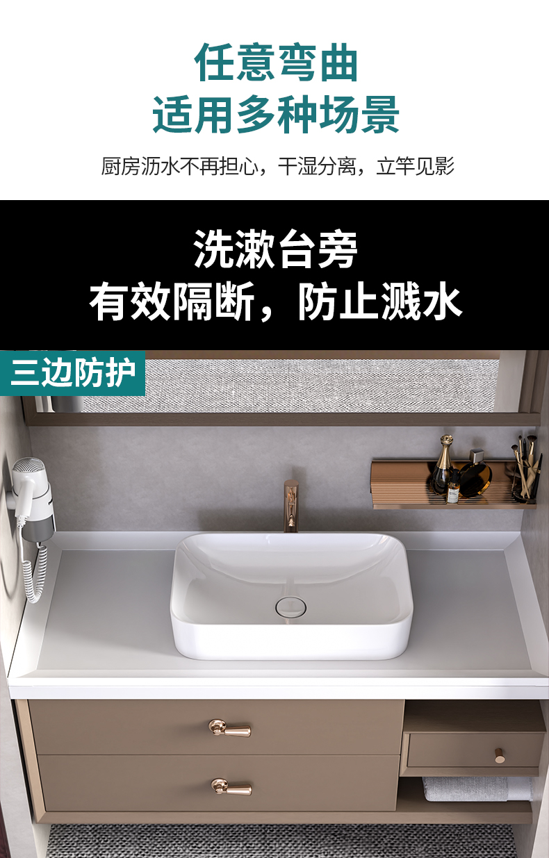 厨房台面挡水条浴室柜缝隙边缘防水条自粘洗手盆隔水条实心防水贴