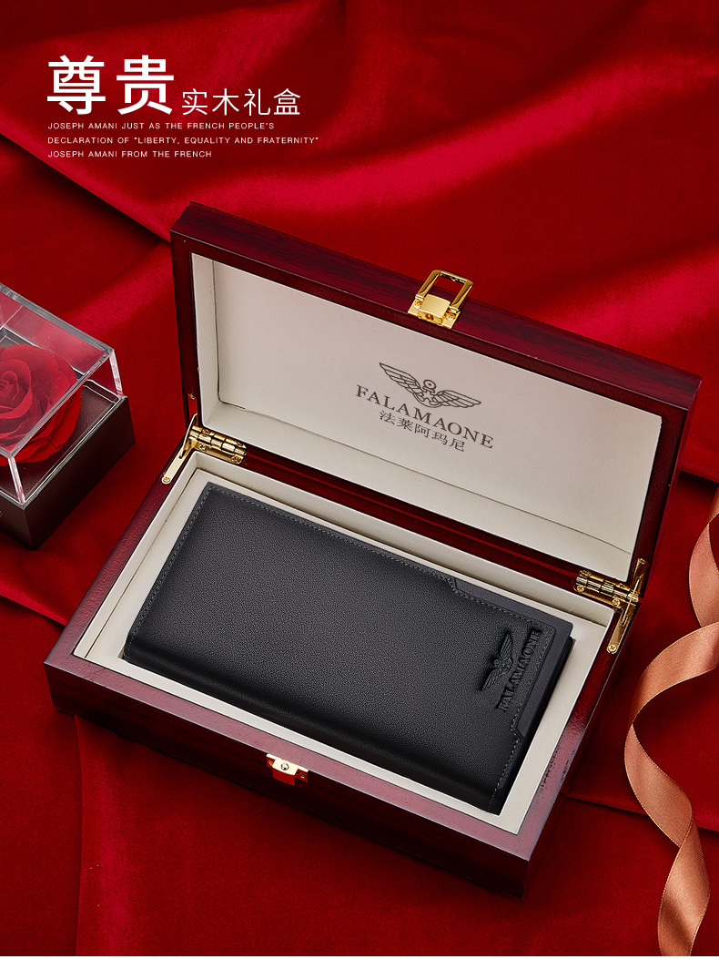 法莱阿玛尼正品钱包男士长款2025新款牛皮高档品牌送老公男友皮夹