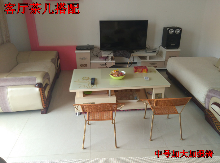 时尚阳台休闲藤椅居家小腾椅铁艺简约藤椅小椅子小凳子铁艺靠背椅
