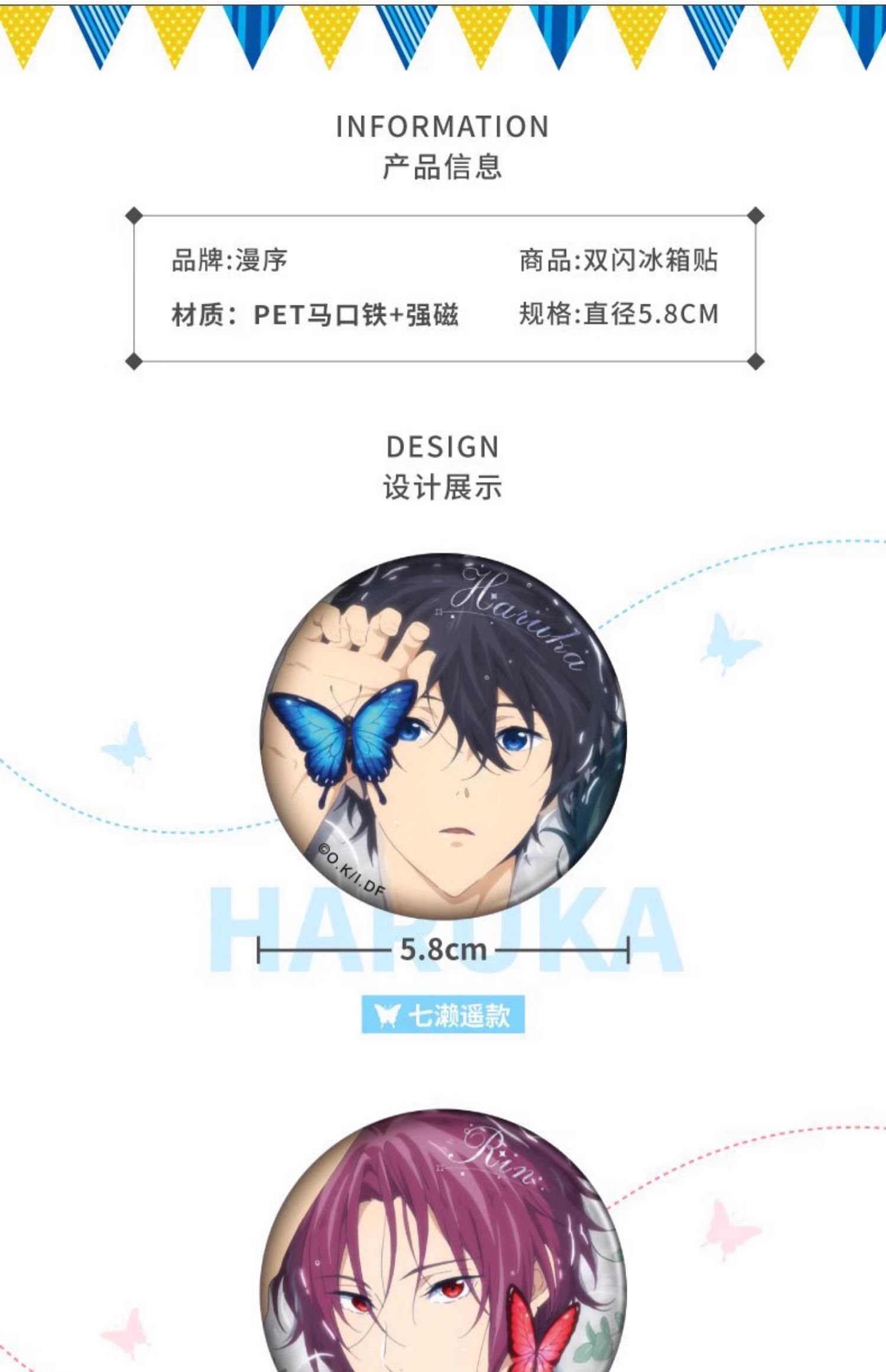 free!漫序正版双闪吧唧徽章型吸铁冰箱贴 七濑遥松冈凛桐岛郁弥