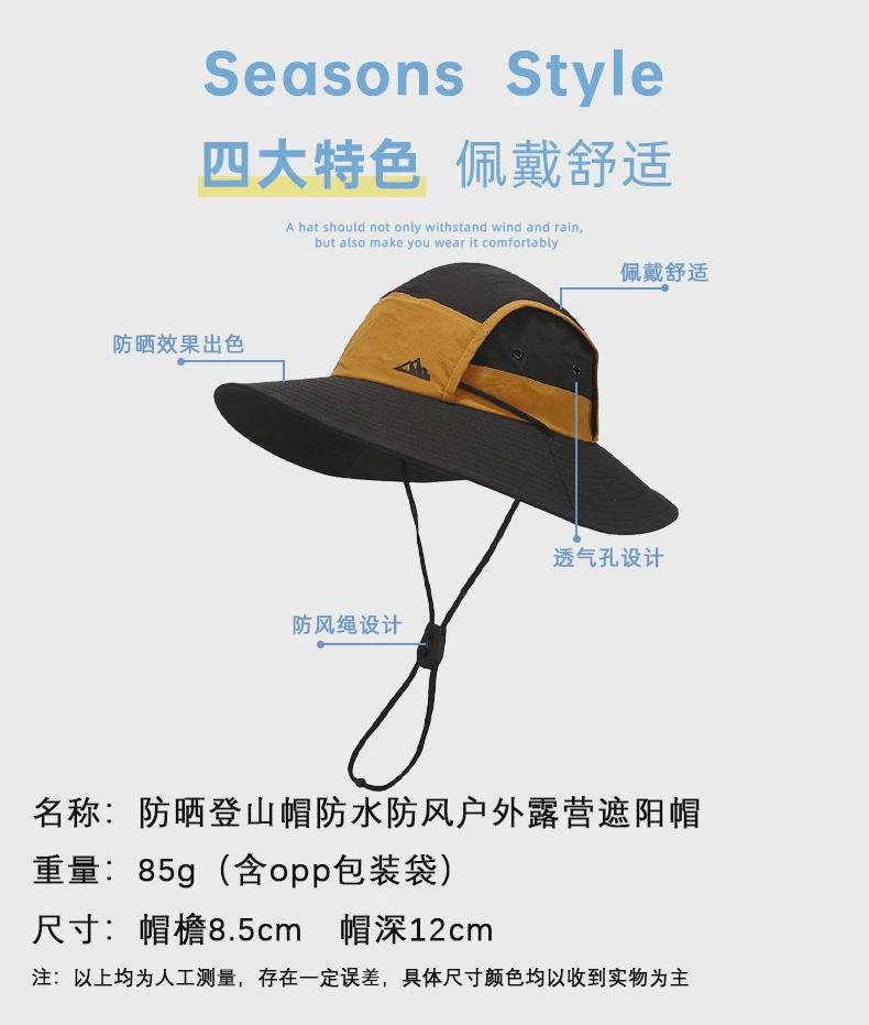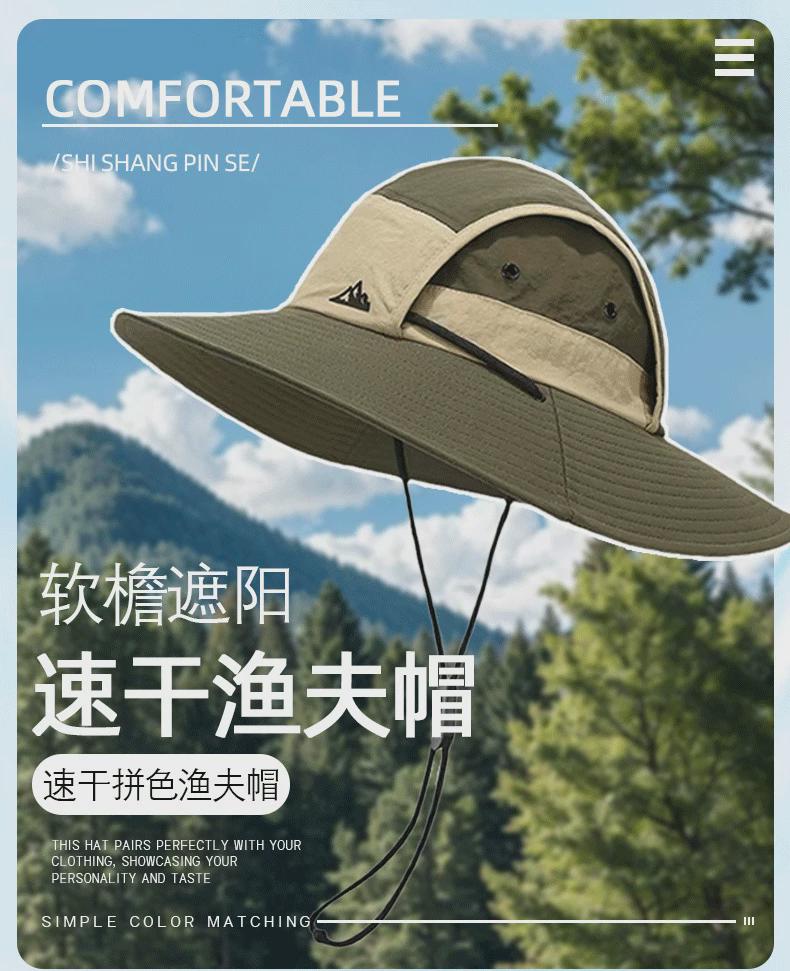 跨境速干大沿拼色户外防晒登山帽防水防风渔夫帽男户外露营遮阳帽