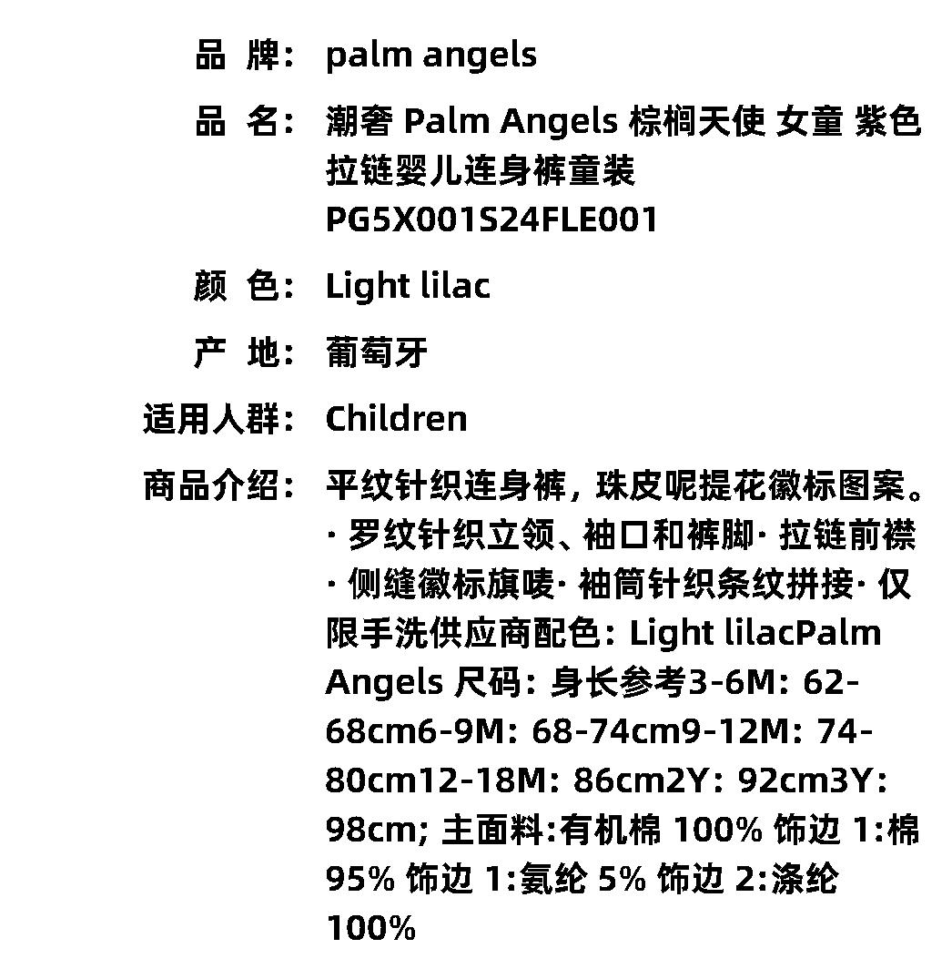 香港直邮潮奢 Palm Angels 棕榈天使 女童 紫色拉链婴儿连身裤童