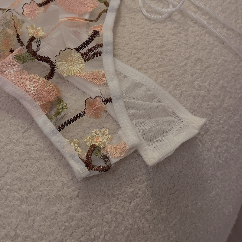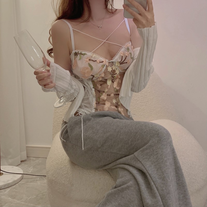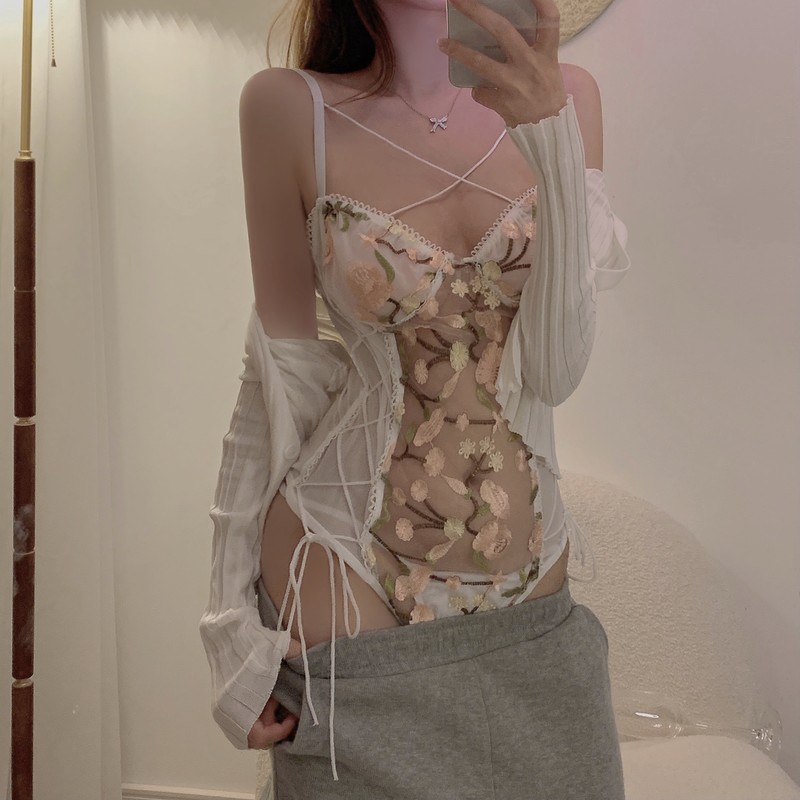 重工艺蕾丝花朵网纱绑带拼接塑身连体衣女性感显瘦情调内衣小吊带