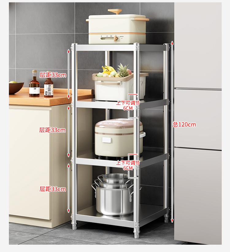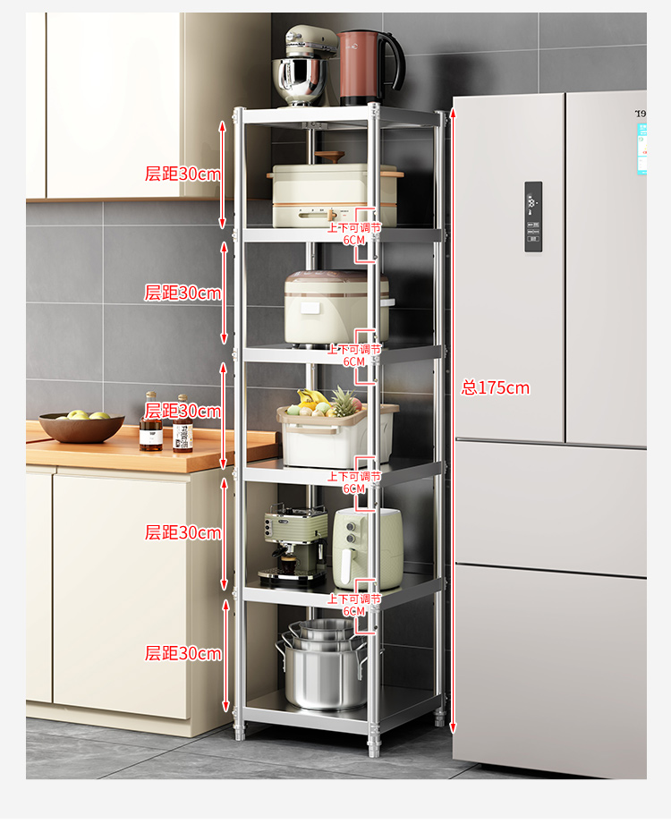 加厚304不锈钢厨房置物架夹缝收纳架落地多层微波炉储物架子家用