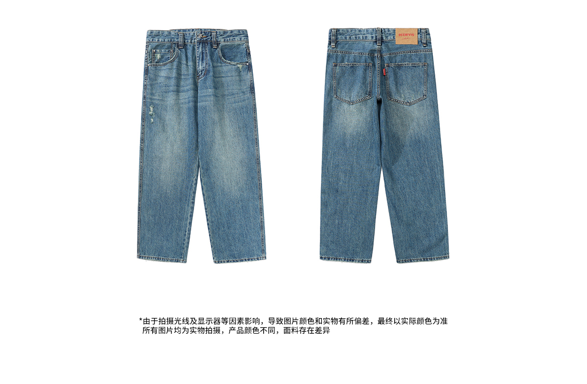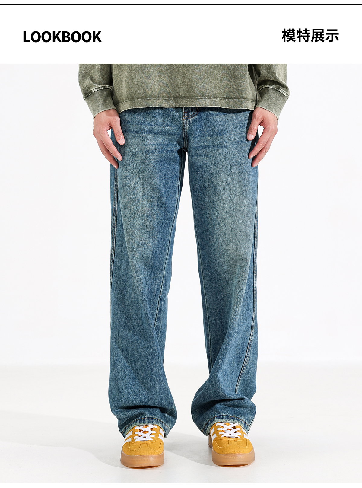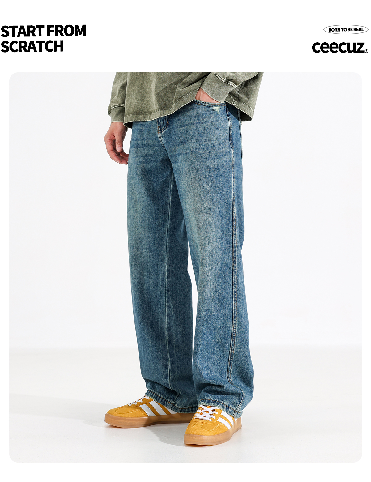 Ceecuz美式cleanfit蓝色直筒牛仔裤男春夏复古水洗宽松休闲长裤子