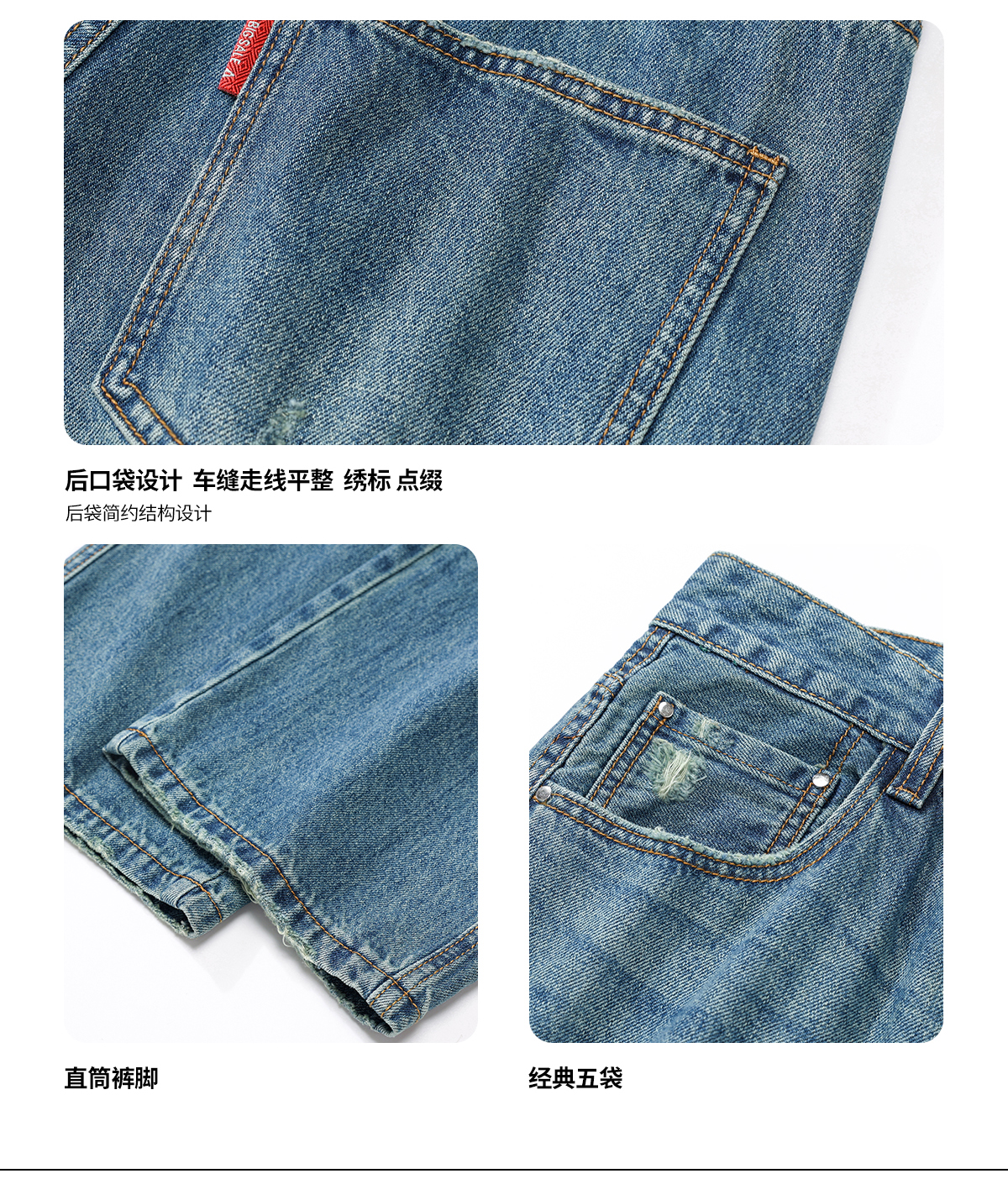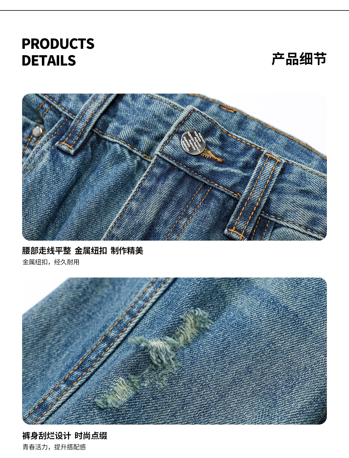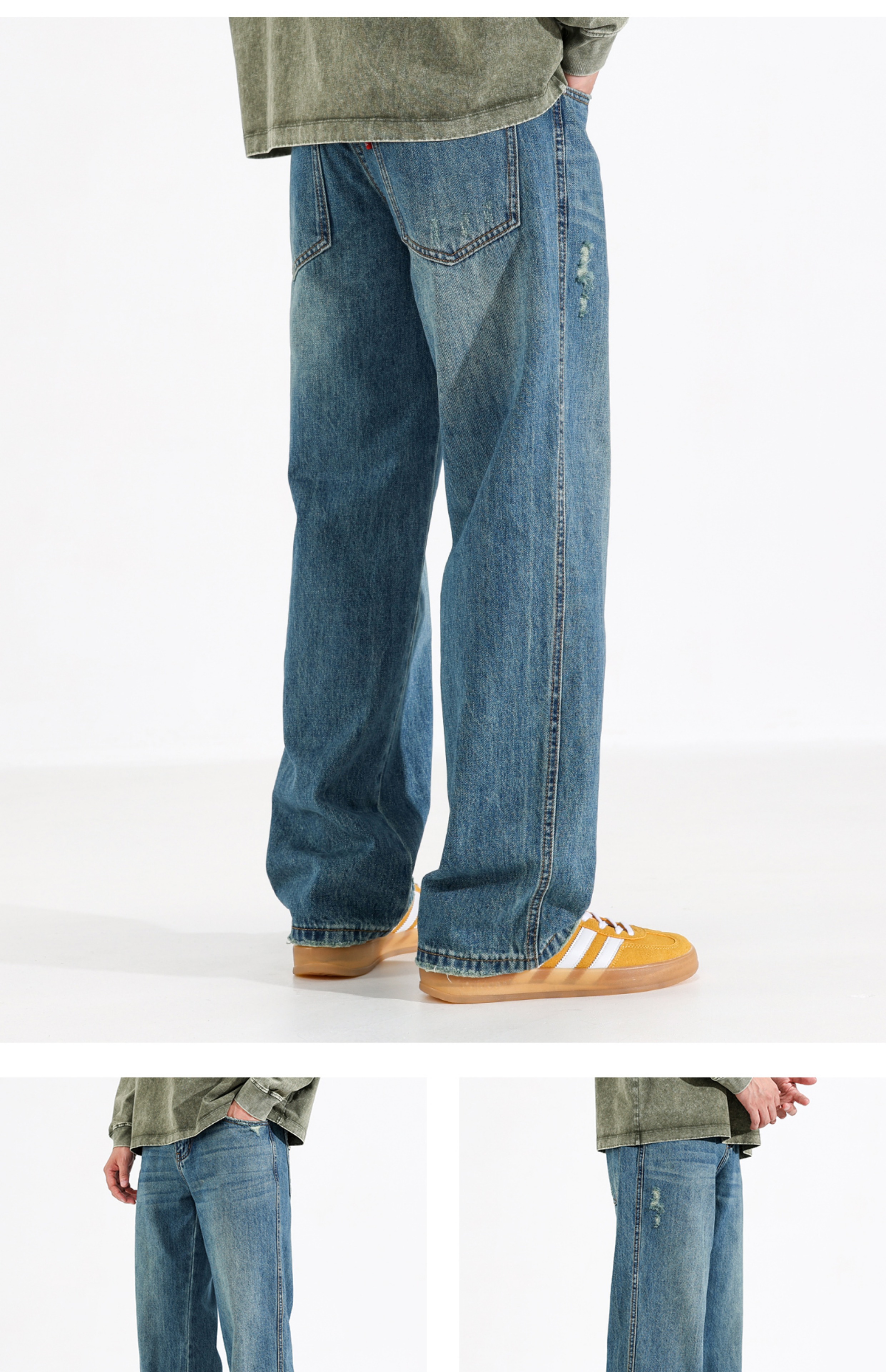 Ceecuz美式cleanfit蓝色直筒牛仔裤男春夏复古水洗宽松休闲长裤子