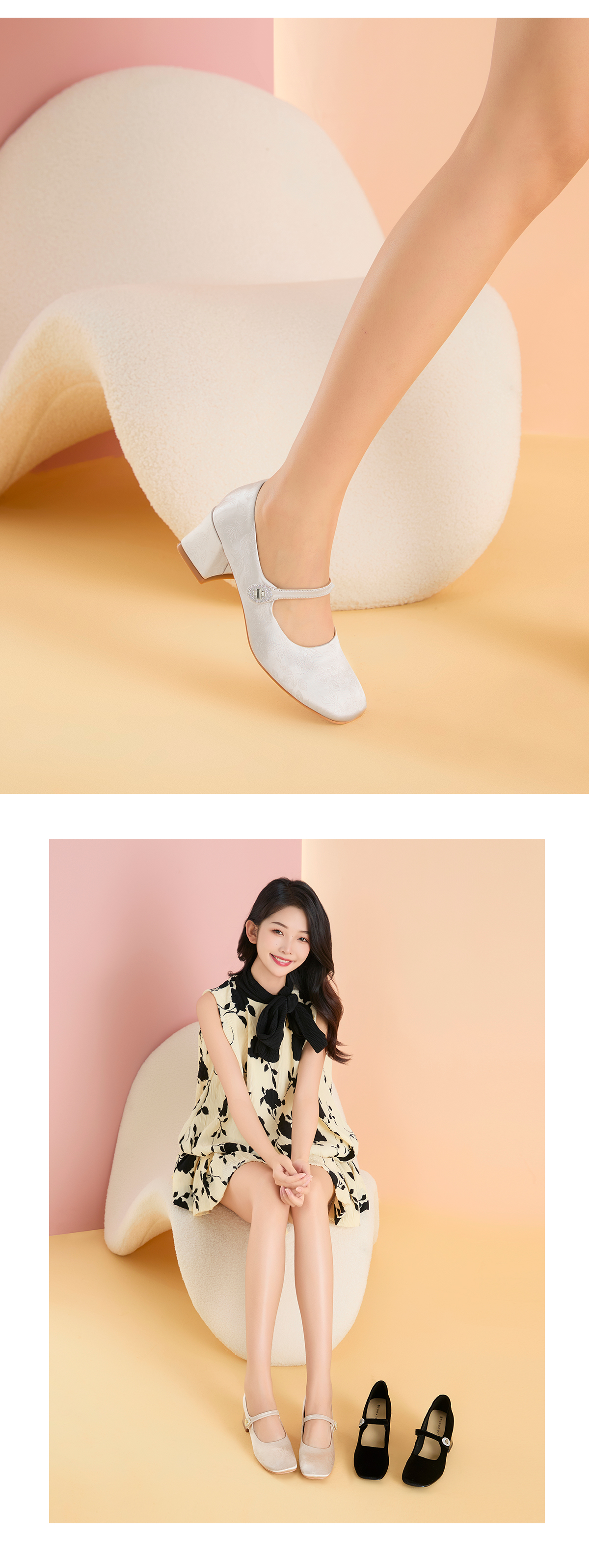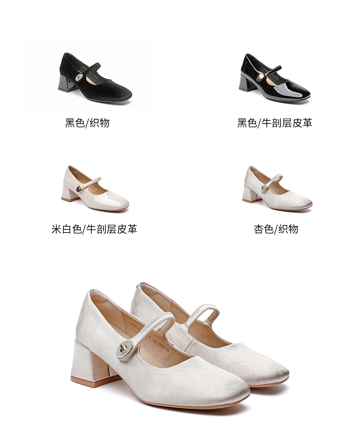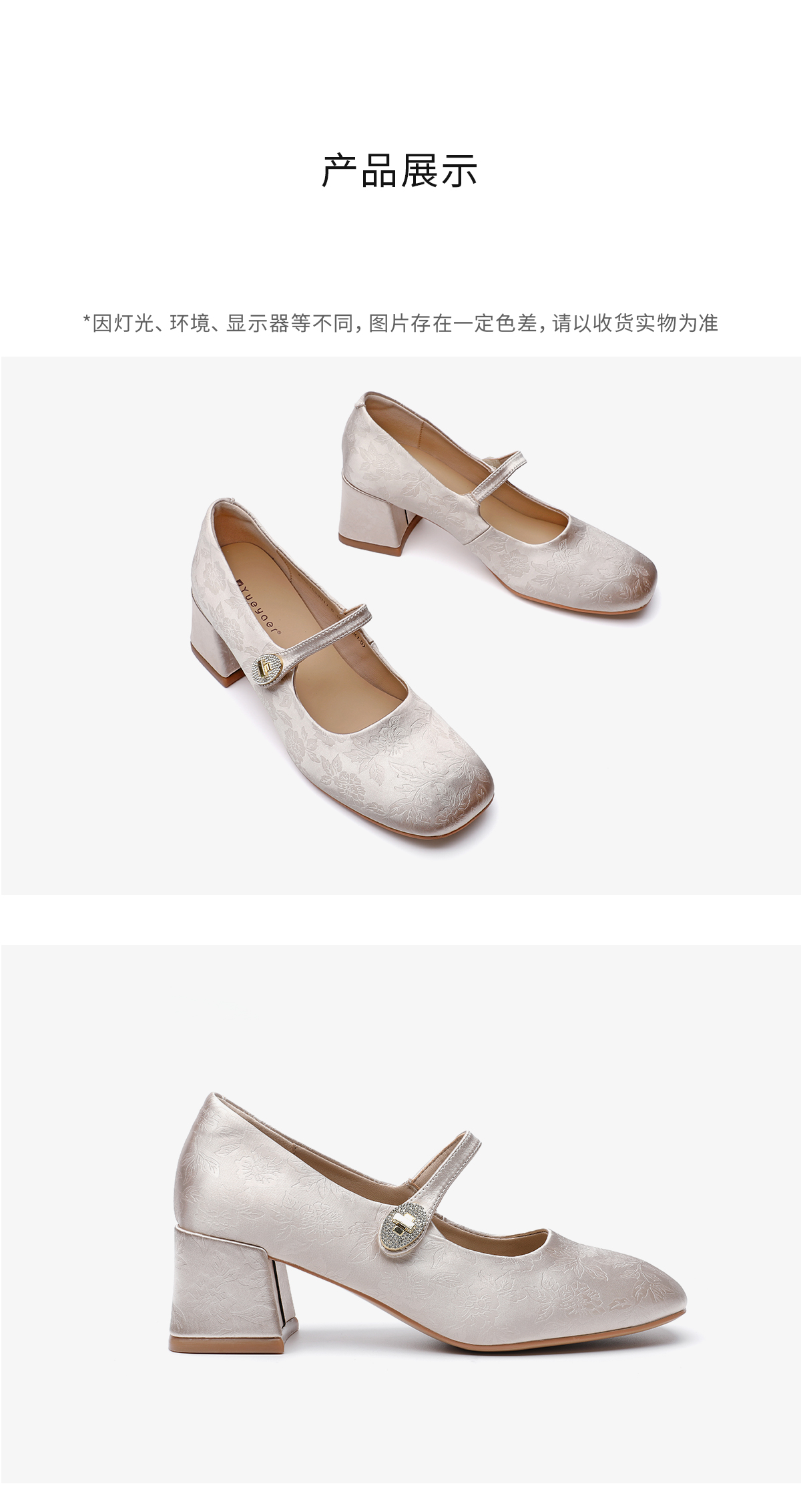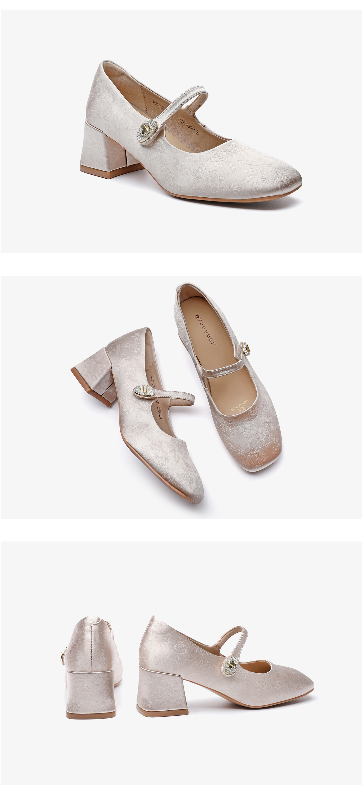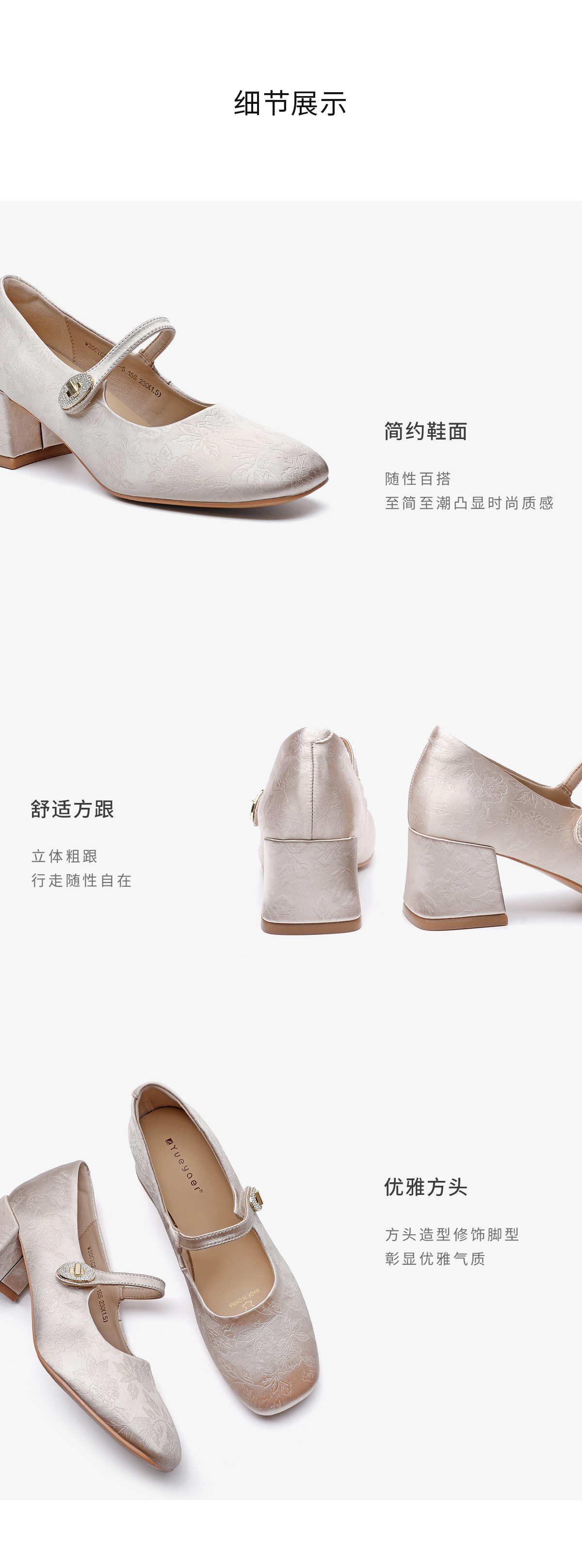 月芽儿中跟软底玛丽珍鞋子女秋款国风新中式绸缎印花方头单鞋