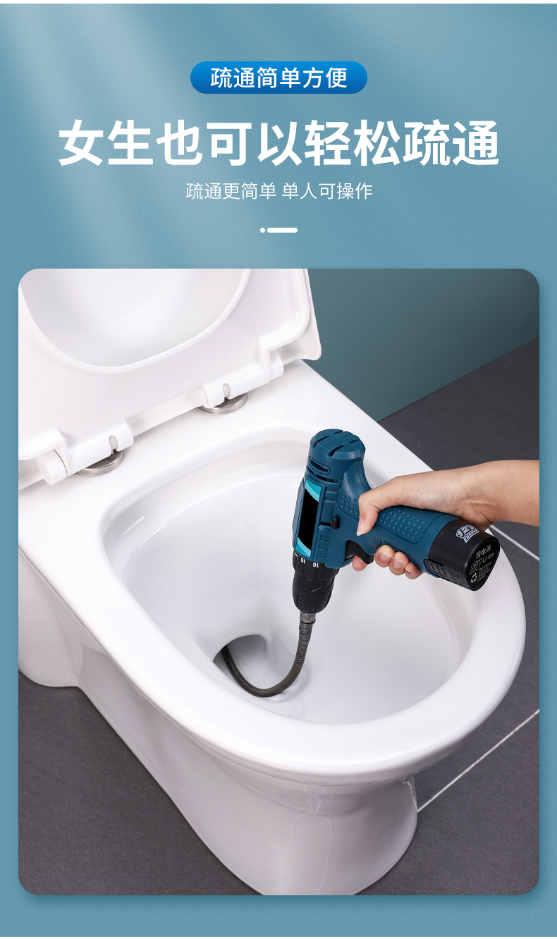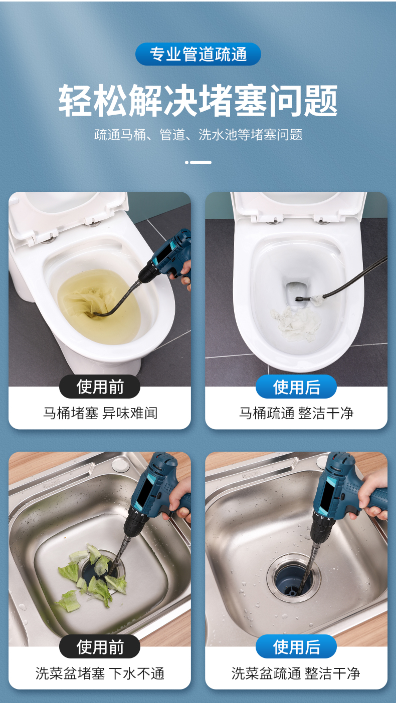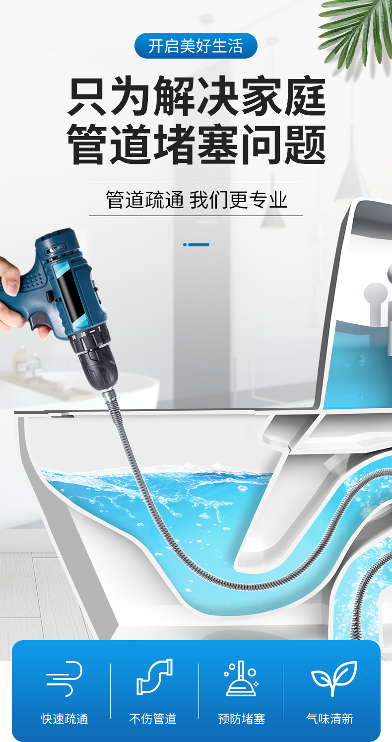 下水道疏通神器电动管道疏通器通马桶厨房地漏下水道堵塞弹簧工具