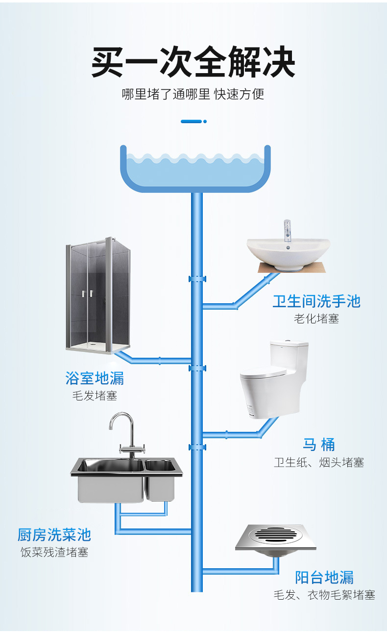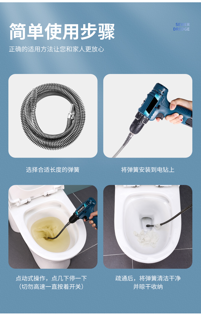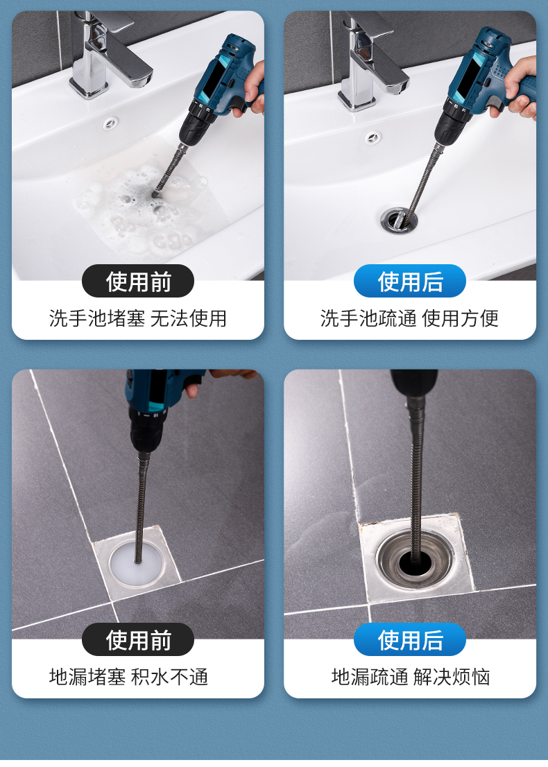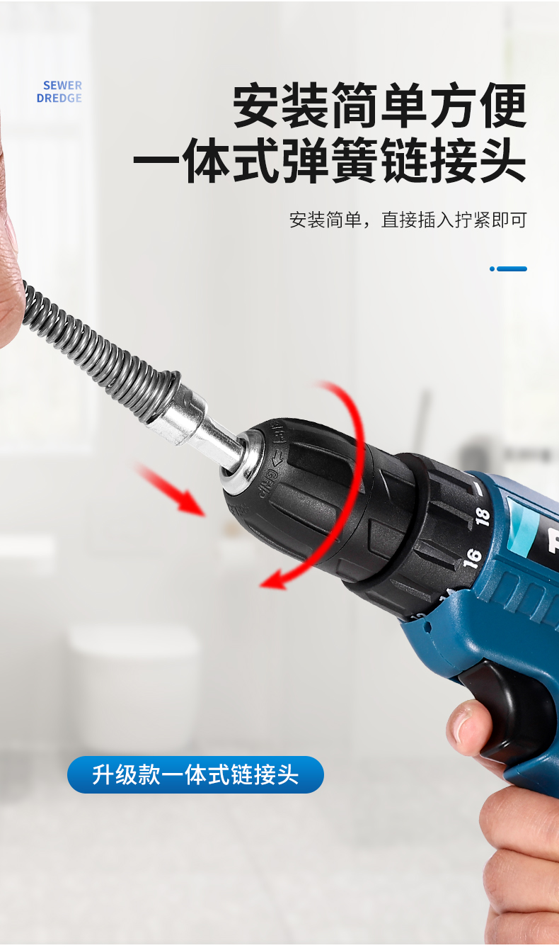 下水道疏通神器电动管道疏通器通马桶厨房地漏下水道堵塞弹簧工具
