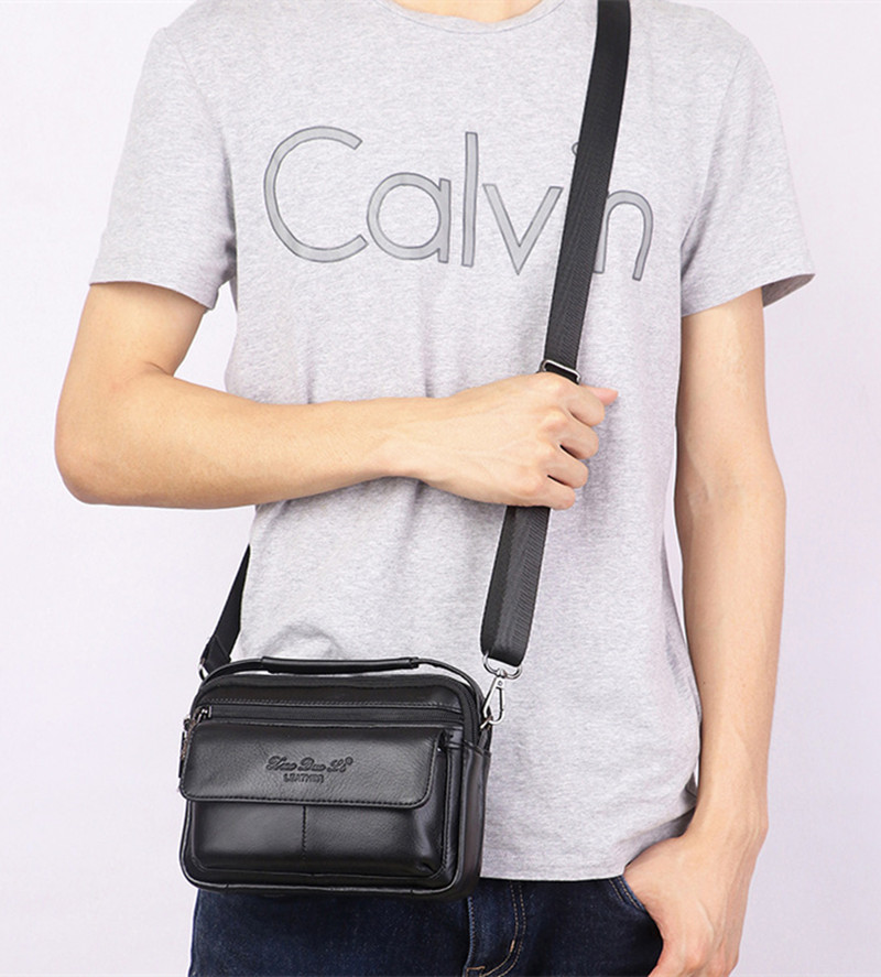 男士真皮7寸大屏手机腰包单肩斜挎小包潮 头层牛皮证件零钱包横