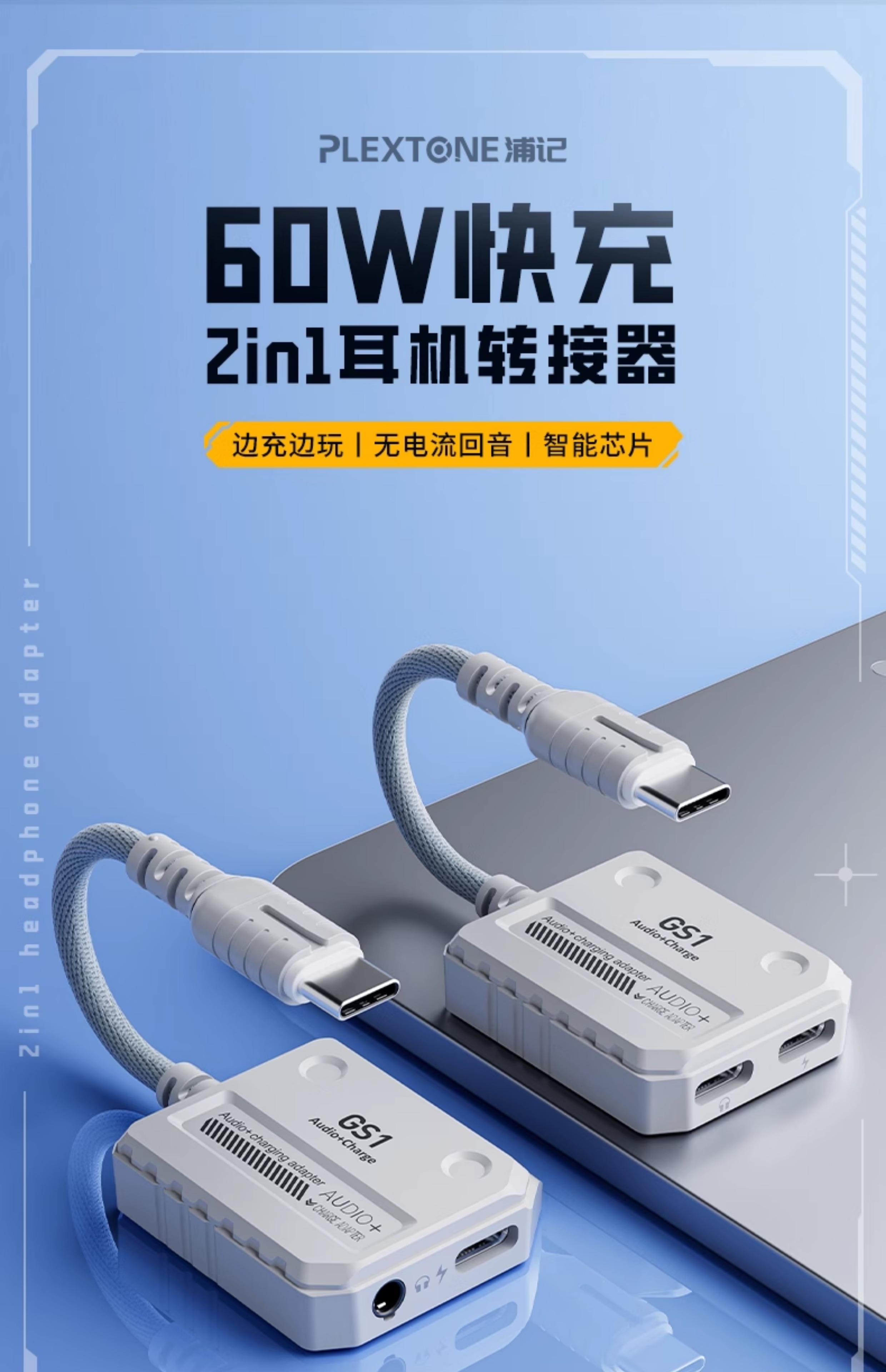 浦记GS1转接器typec耳机ipadpro/mini6/iphone15pro max平板手机适用苹果快充电二合一3.5mm连麦吃鸡专用游戏