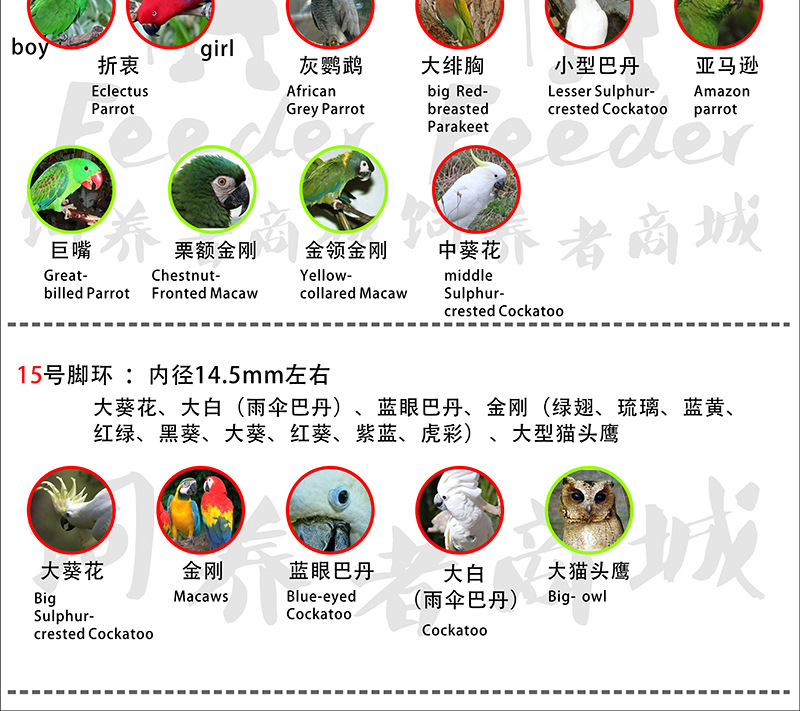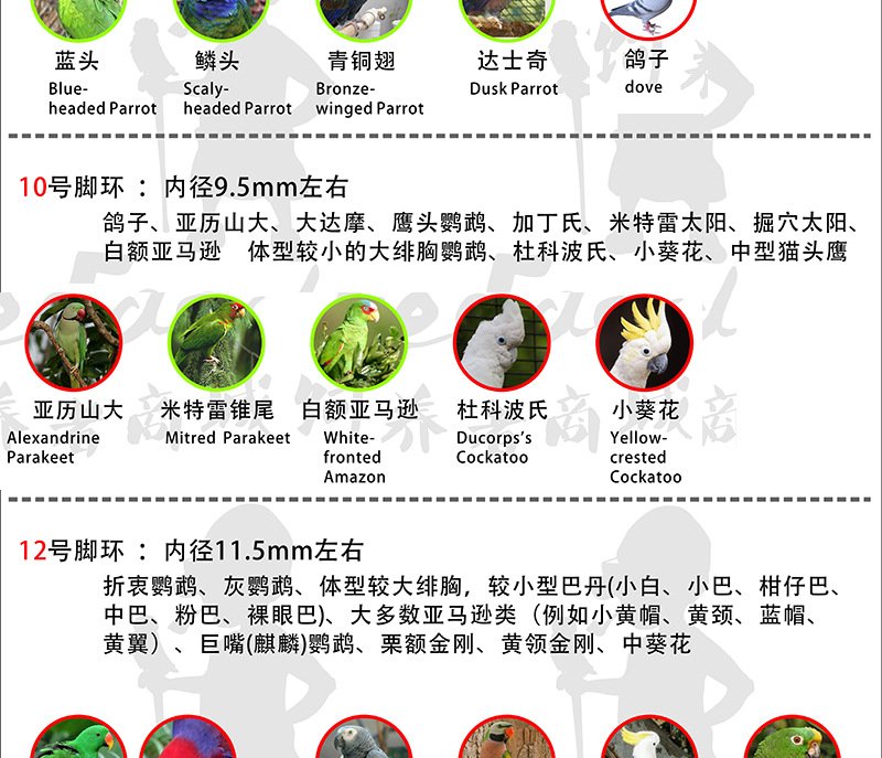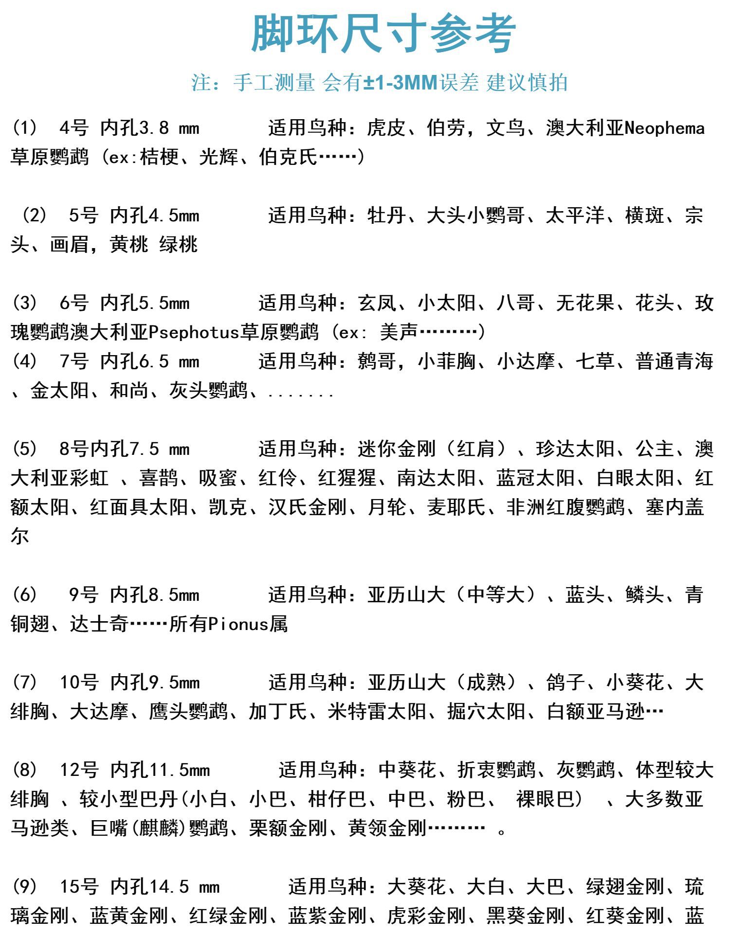鹦鹉脚环 鸟类脚环脚配件鸟活动开口圈扣用品鸟扣 鸟脚环
