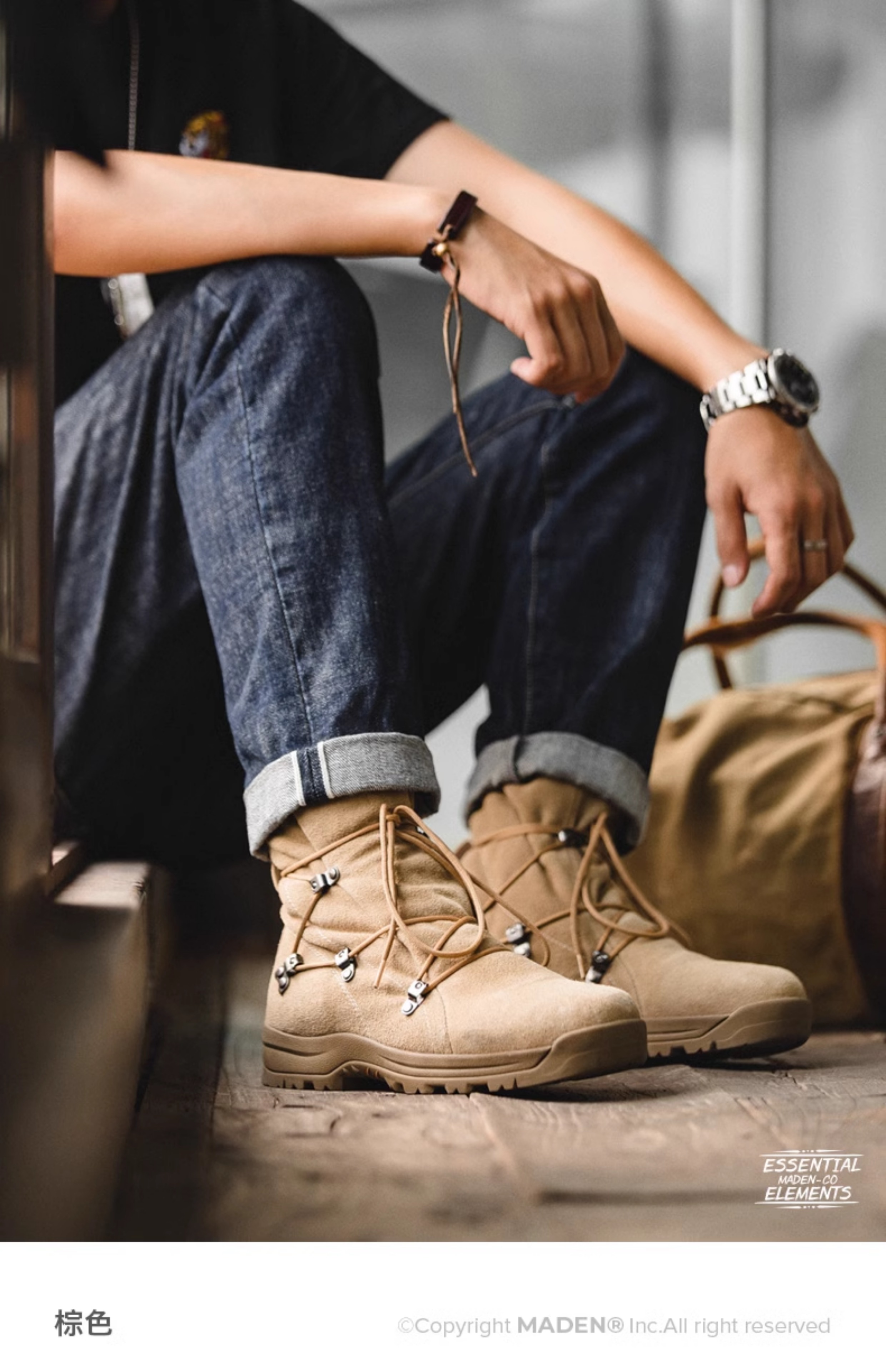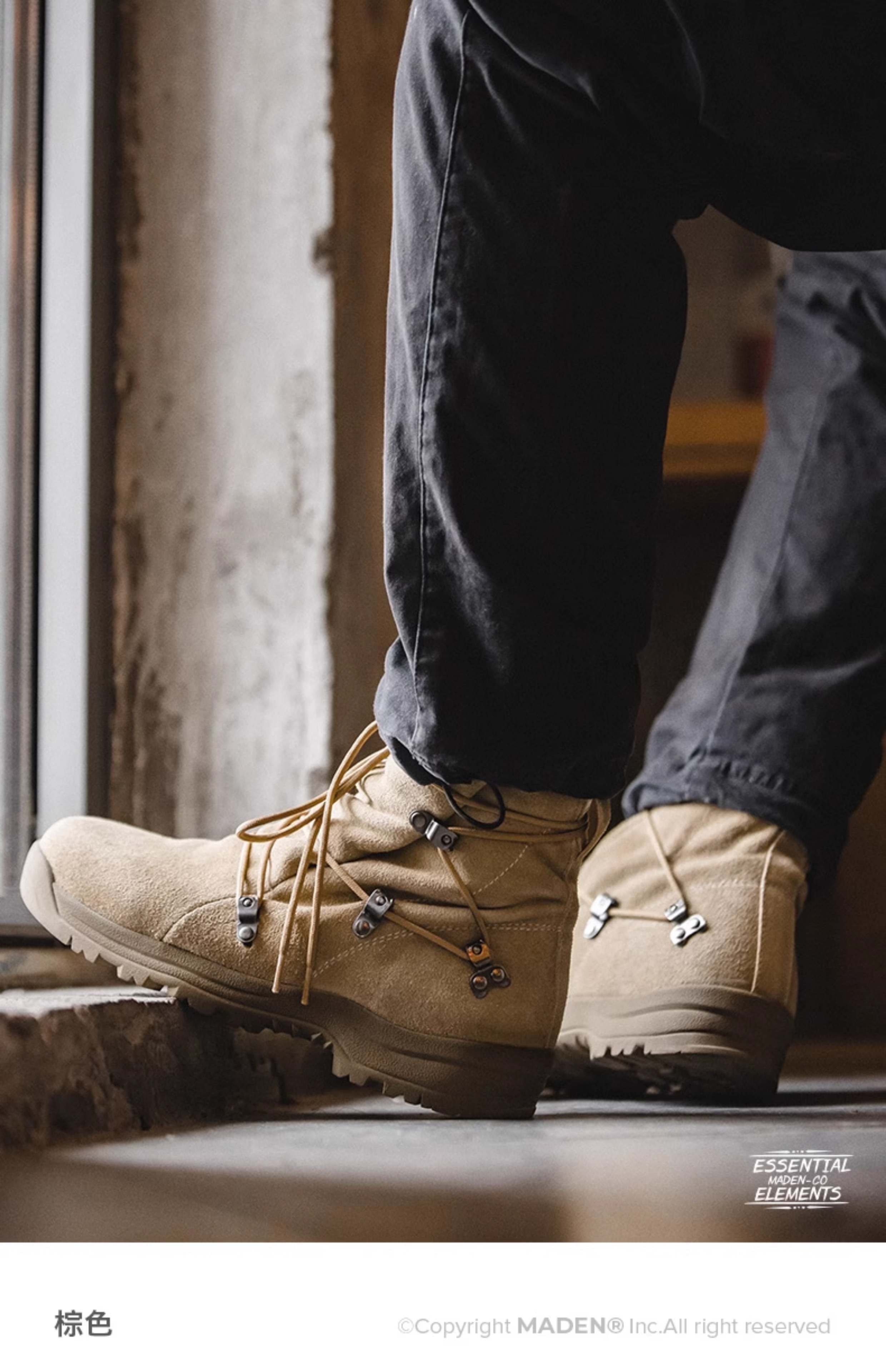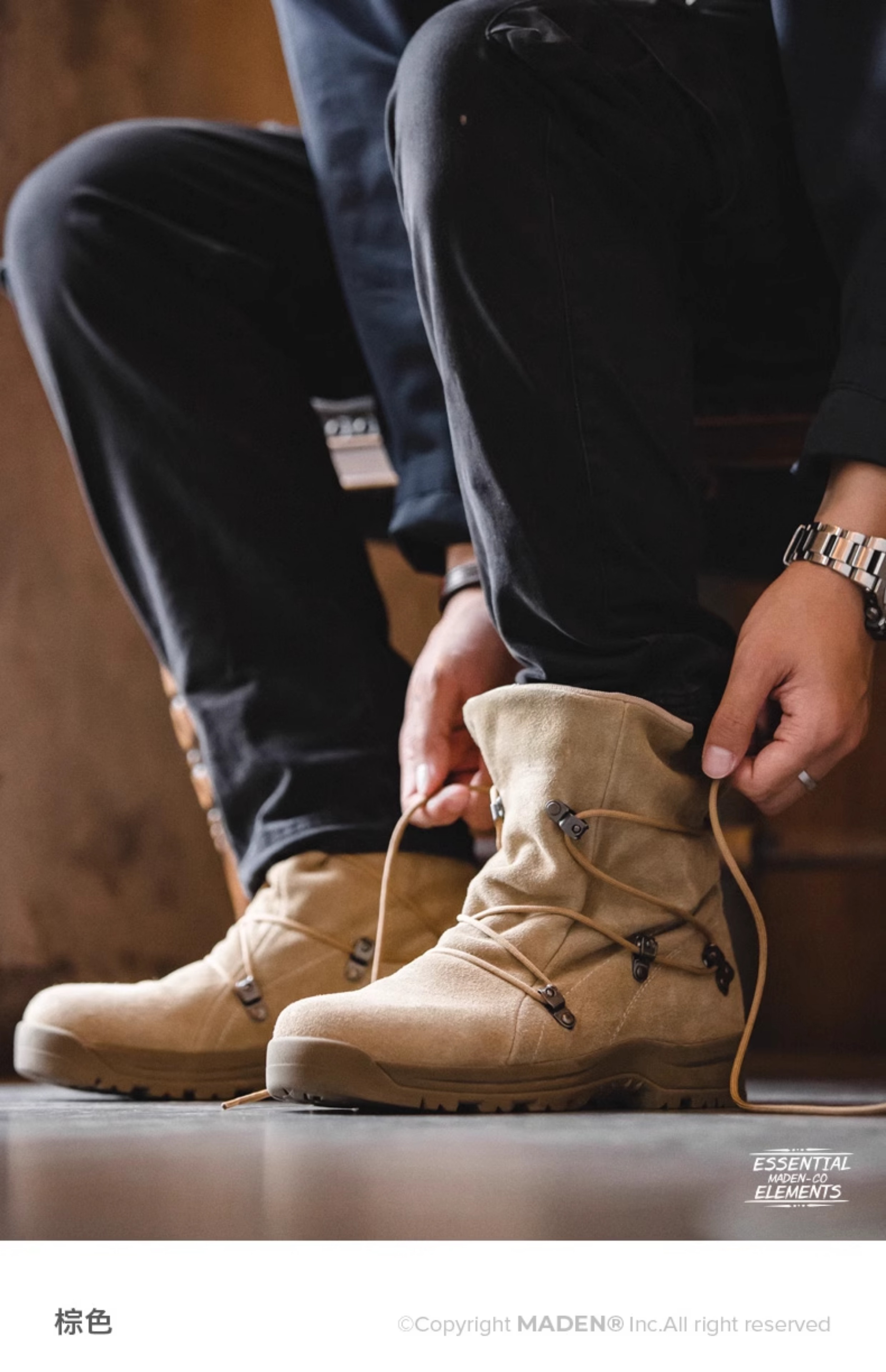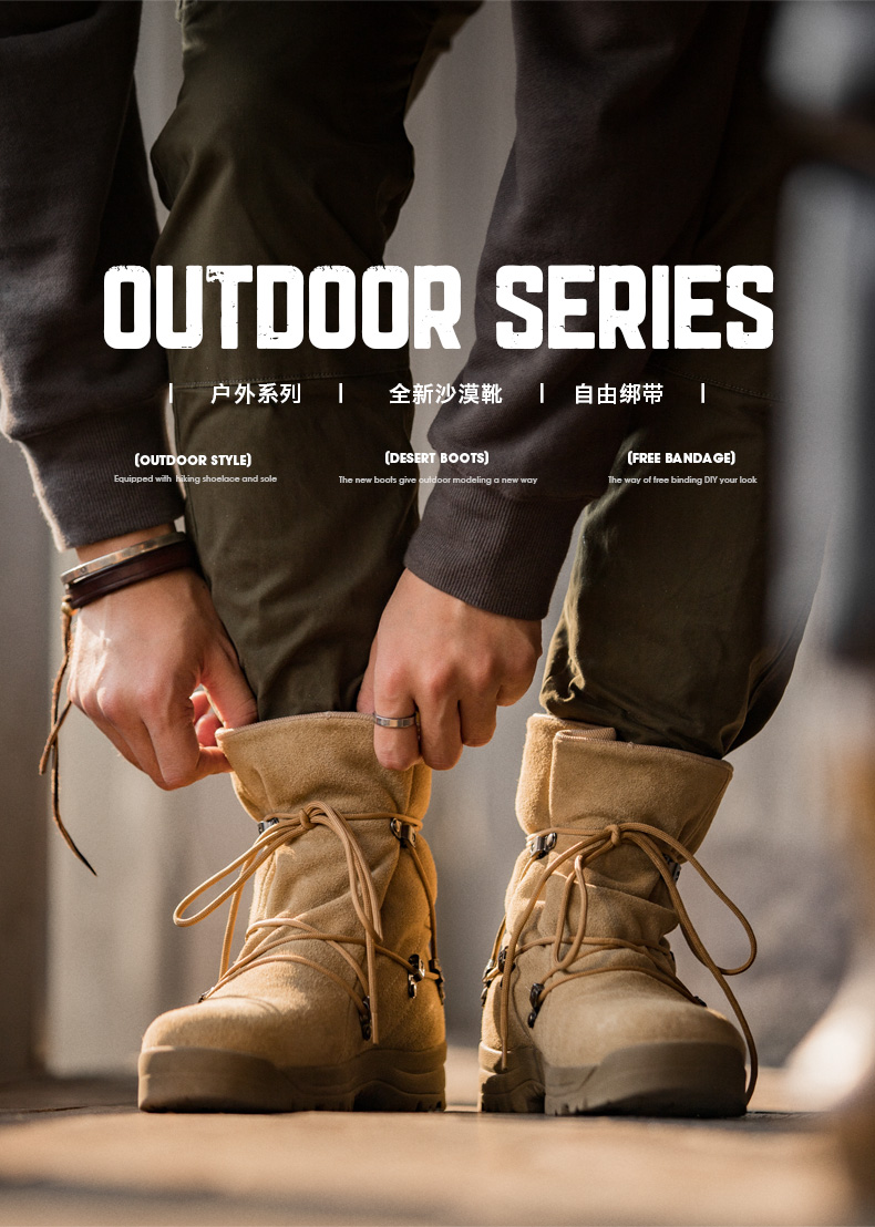 马登工装 美式复古高帮沙漠靴棕色户外登山靴休闲工装靴子男鞋冬