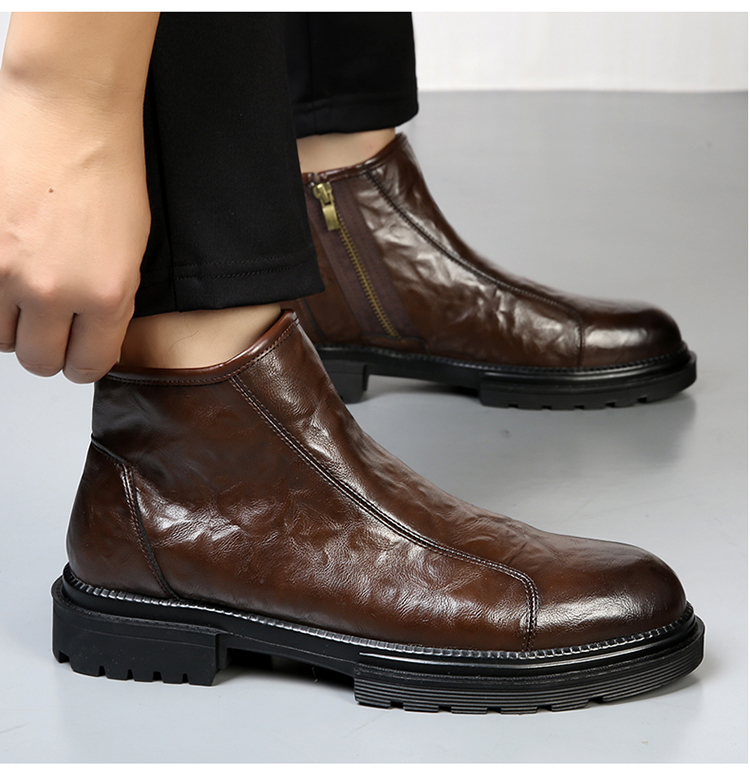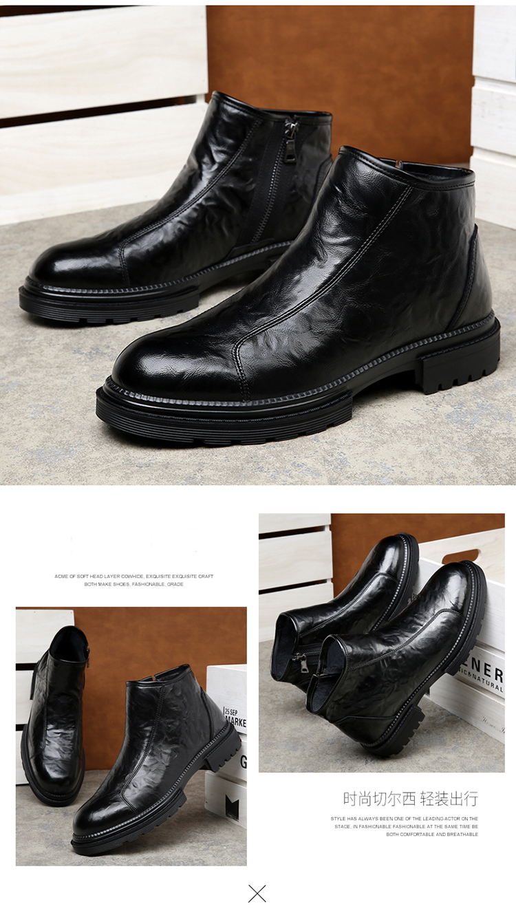 马丁靴男英伦风2024新款软皮高帮切尔西靴子真皮冬季加绒高端短靴