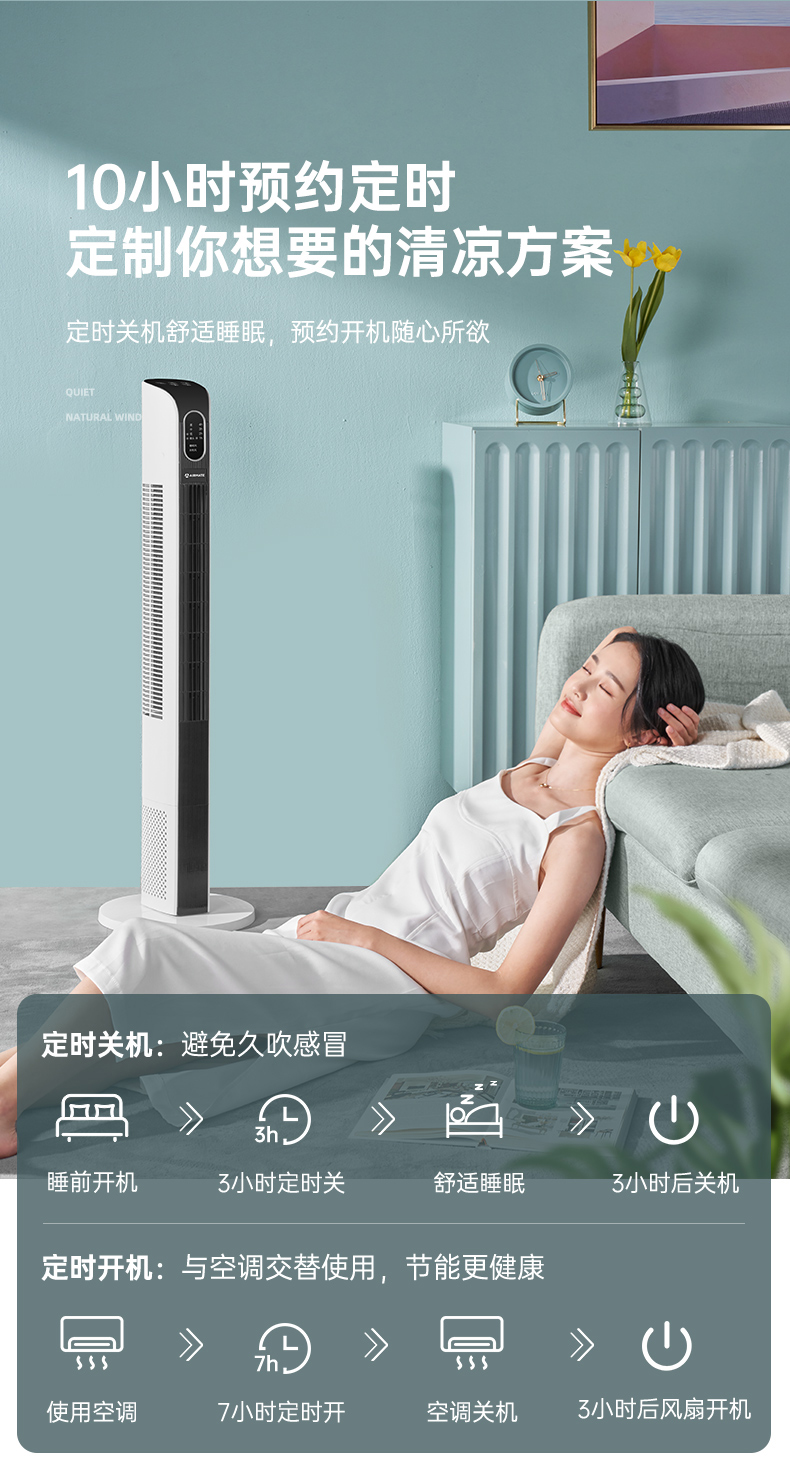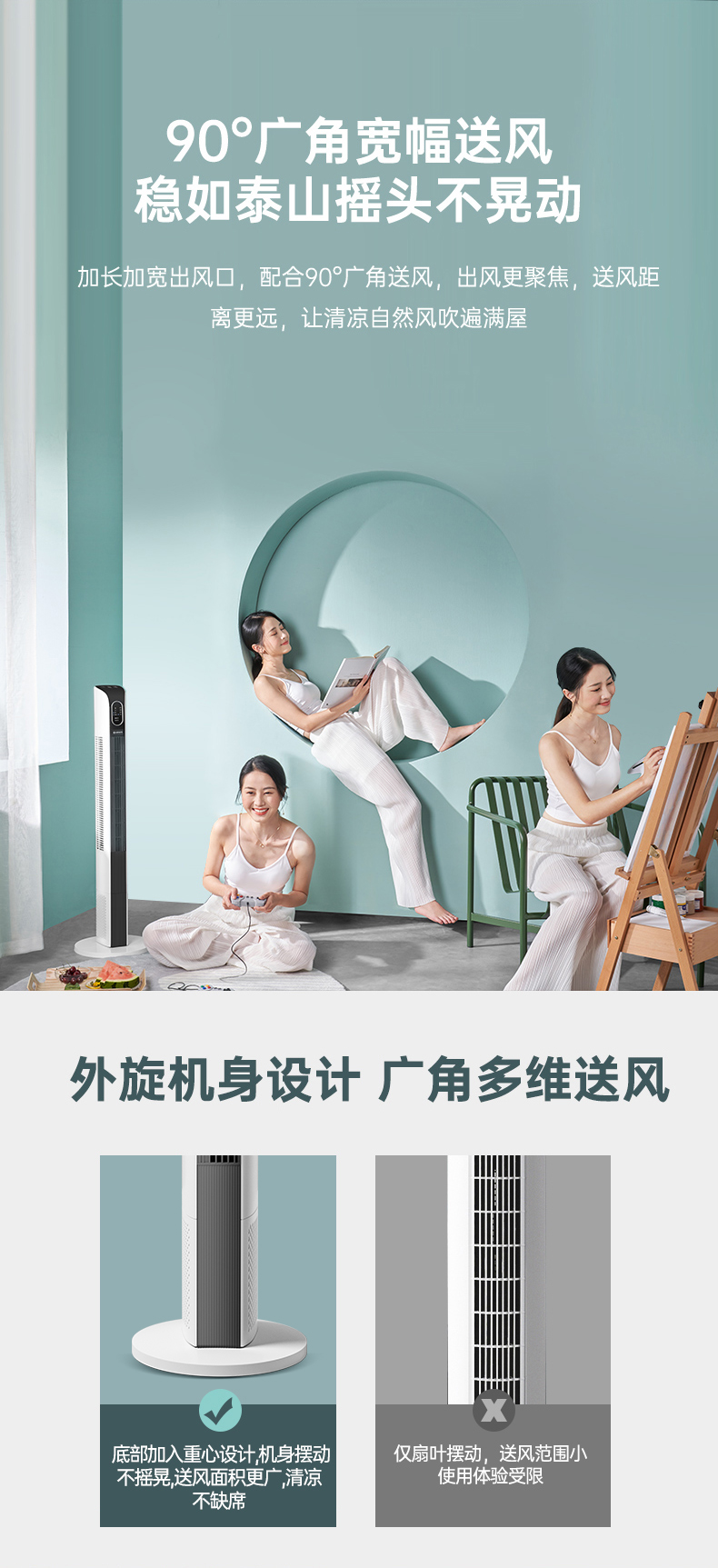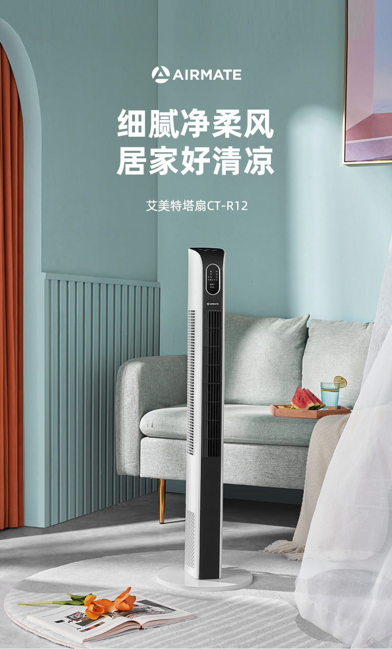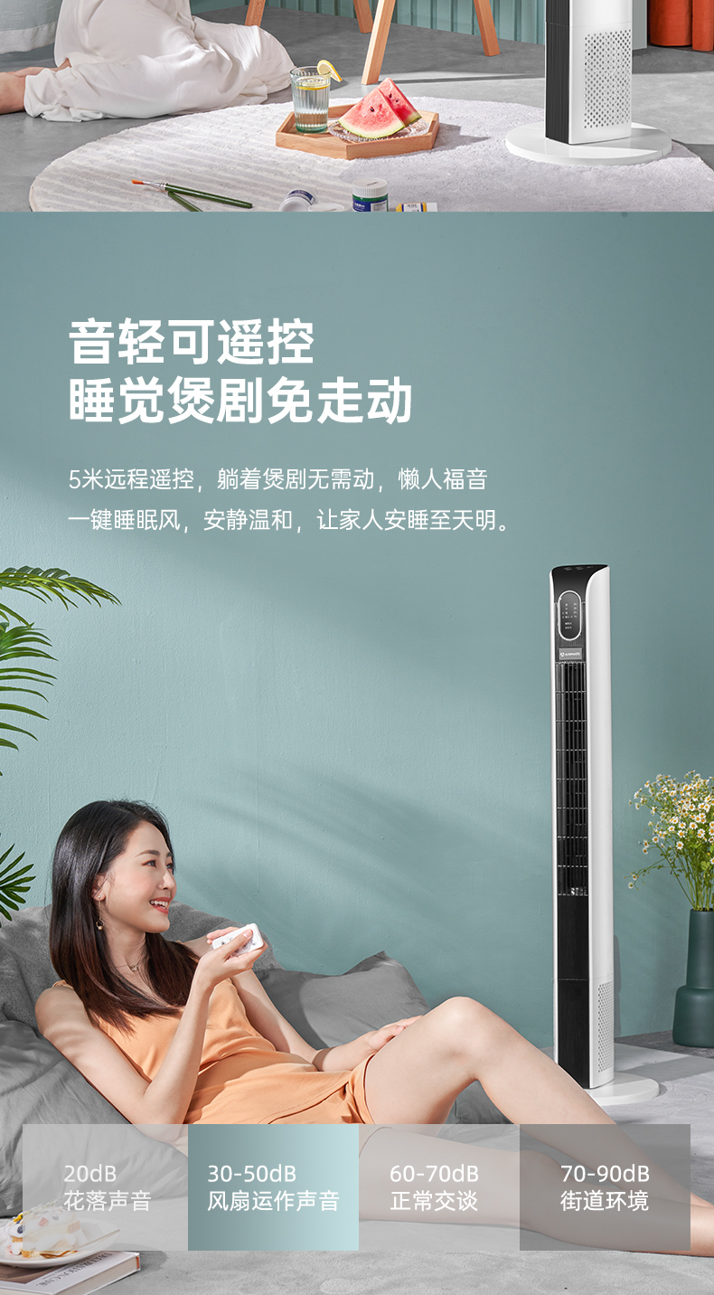 艾美特塔扇电风扇落地扇无叶家用轻音遥控摇头立式宿舍塔式电扇