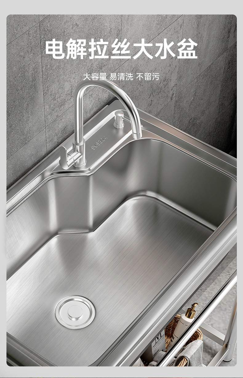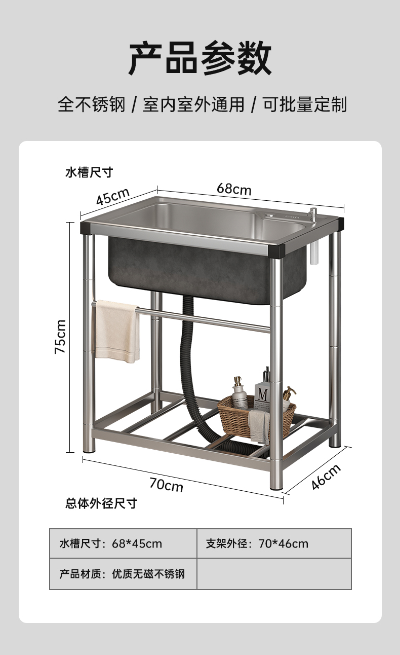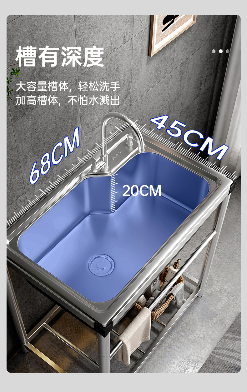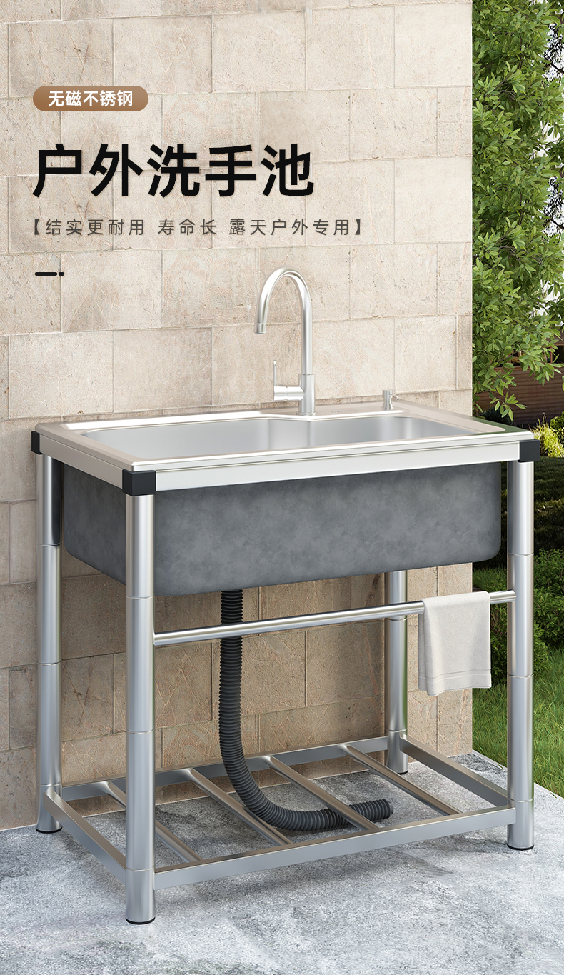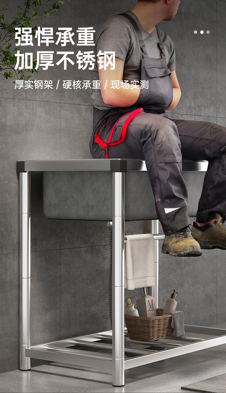 卫生间落地洗手盆洗手间厕所浴室水池304不锈钢水槽出租房带支架