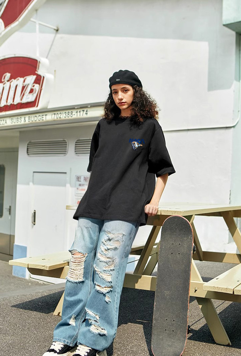 NASASXRUI联名夏季短袖T恤男女宽松时尚个性潮流透气打底衫半袖