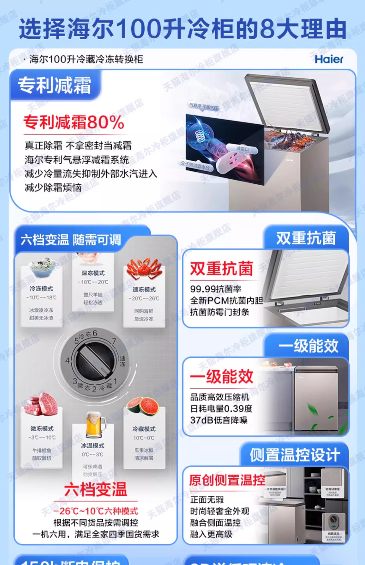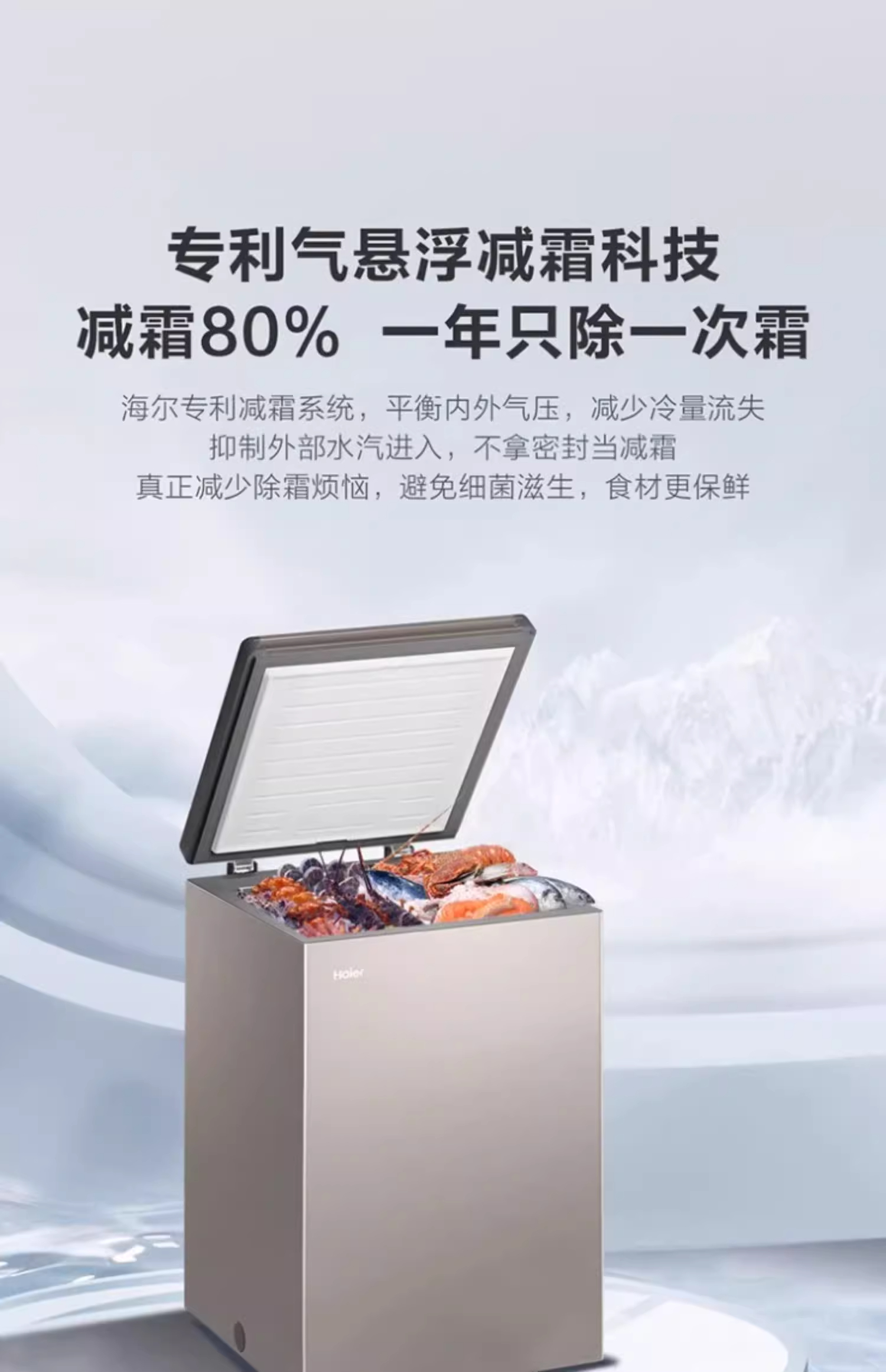 海尔冷柜家用100L升全冷冻冷藏小型冰柜家用商用减霜一级能效正品