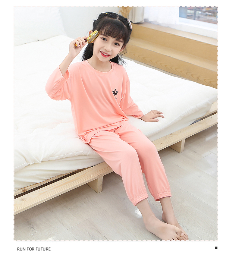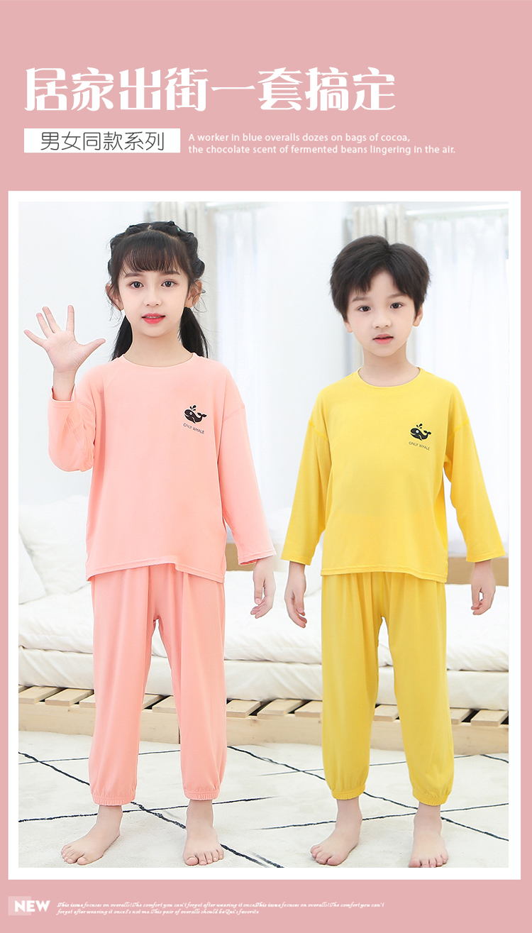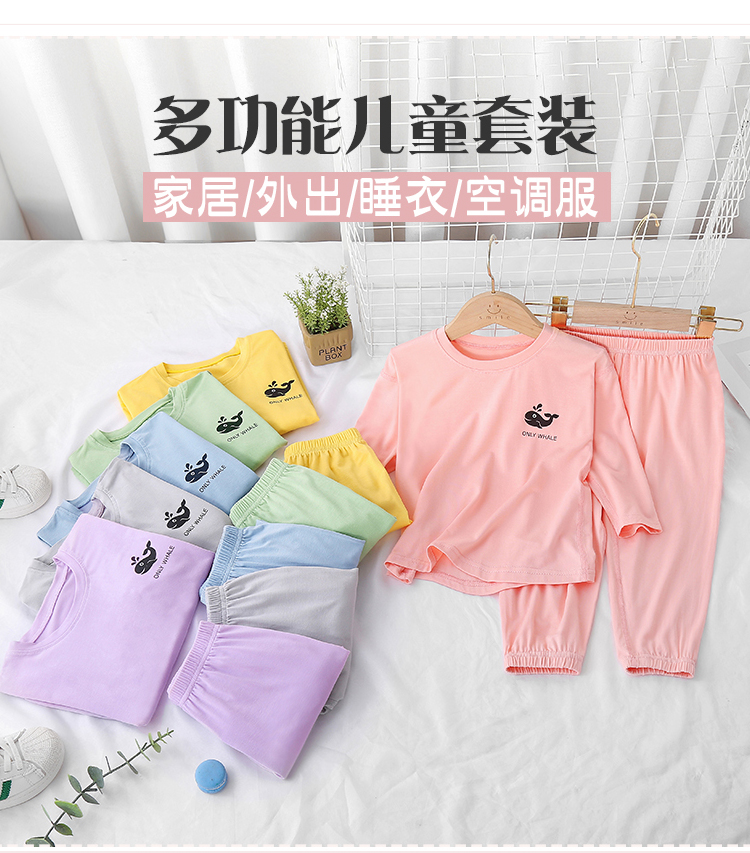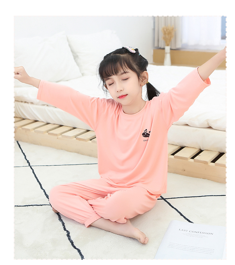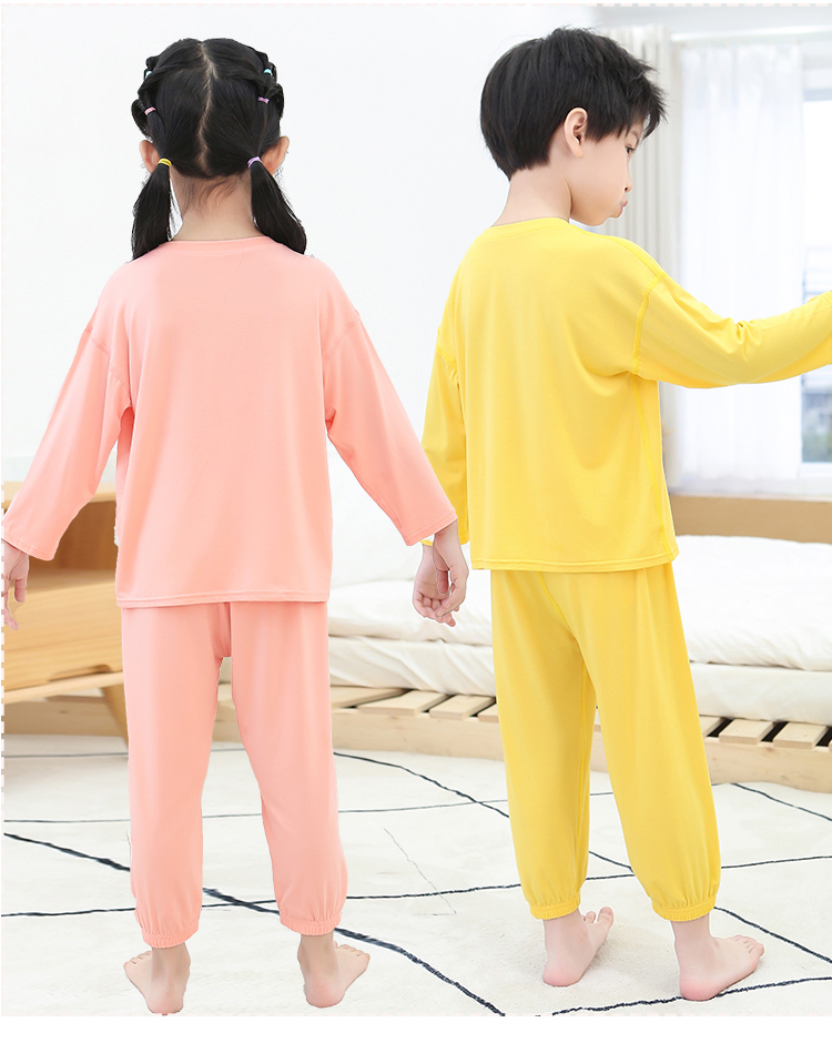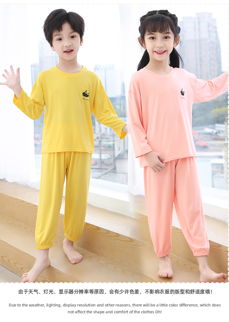 儿童莫代尔套装25春夏秋男童女童薄长袖长裤两件套无骨家居服睡衣