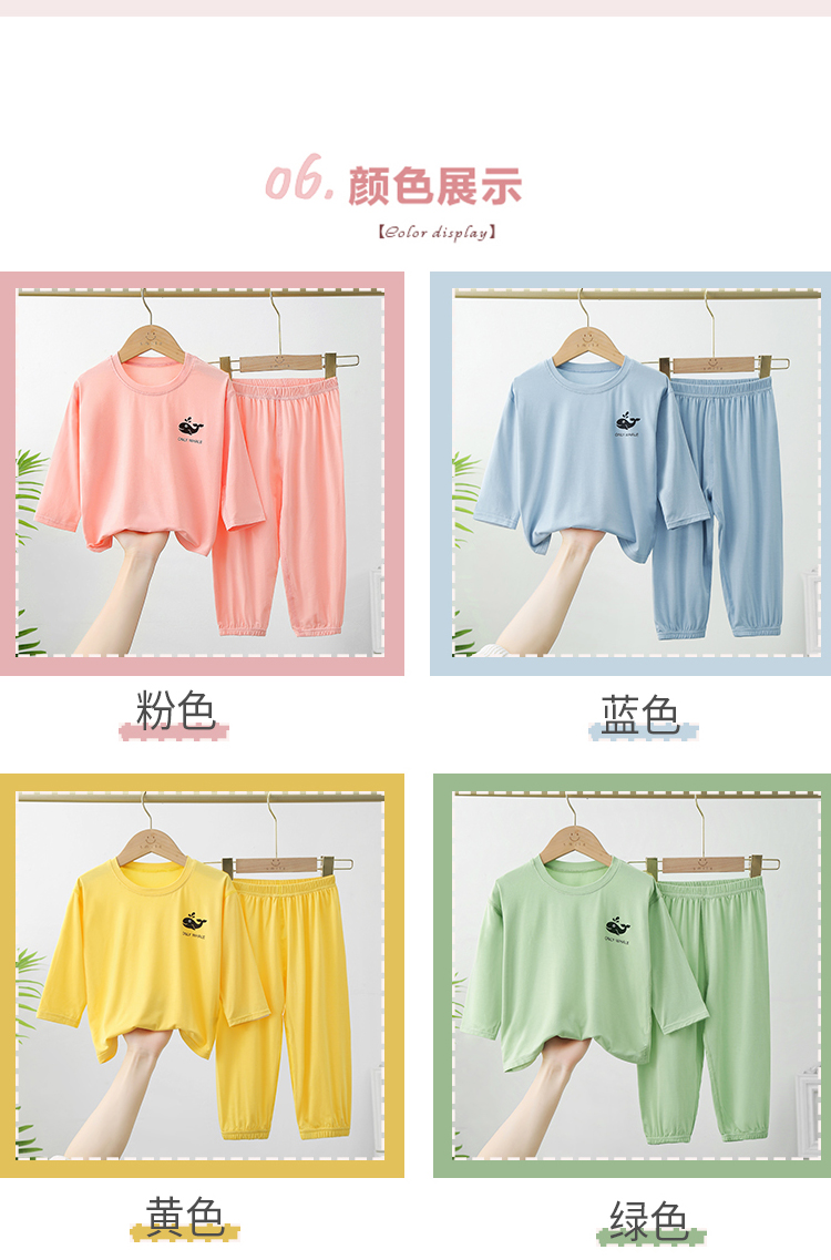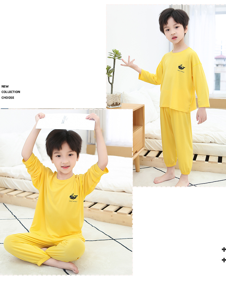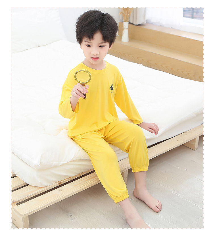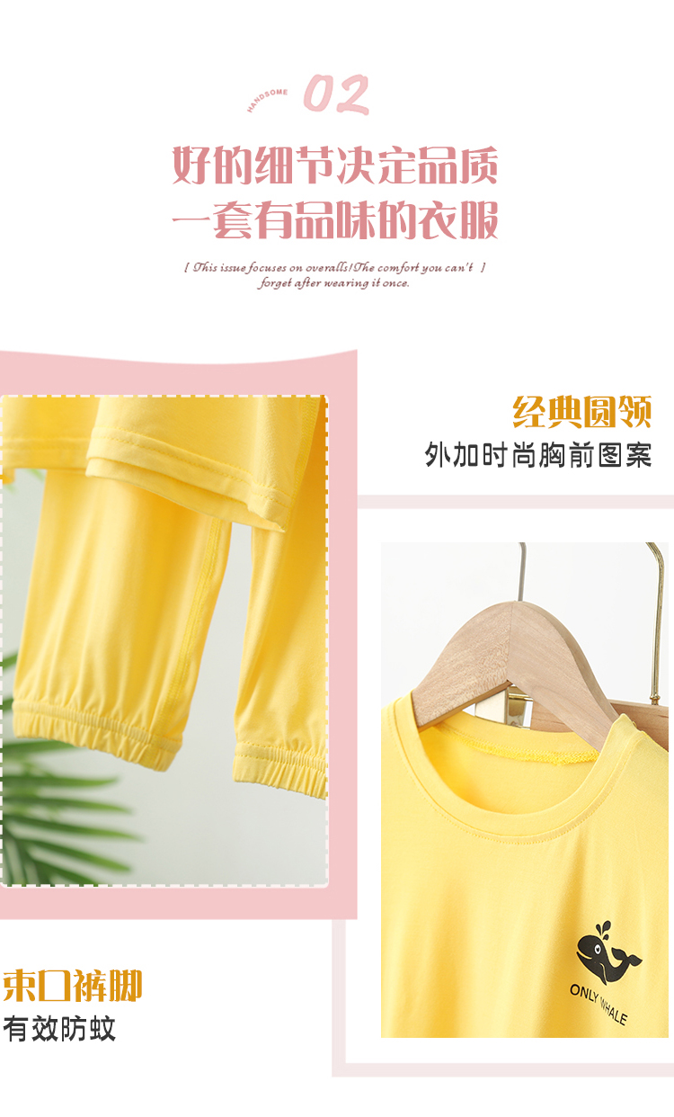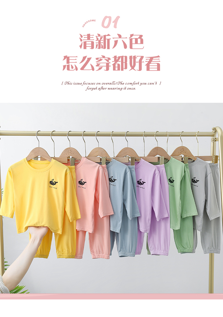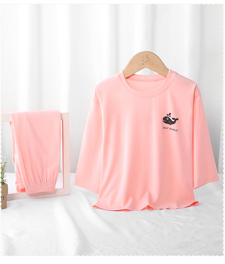 儿童莫代尔套装25春夏秋男童女童薄长袖长裤两件套无骨家居服睡衣