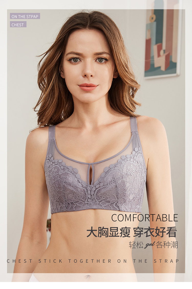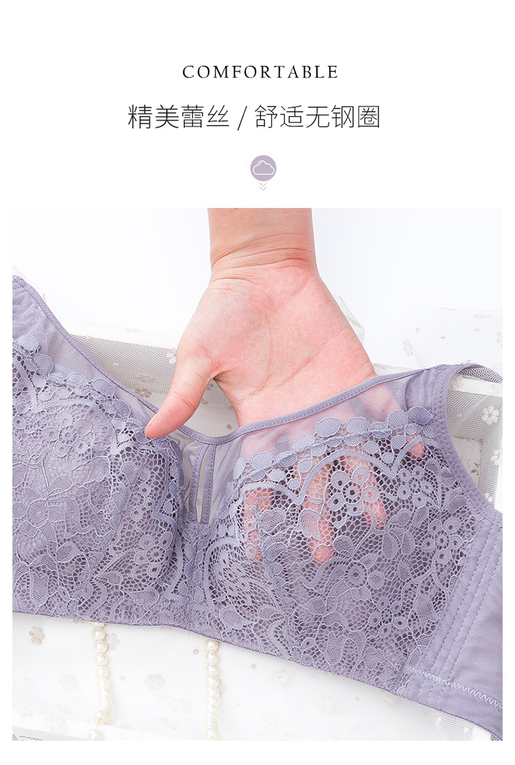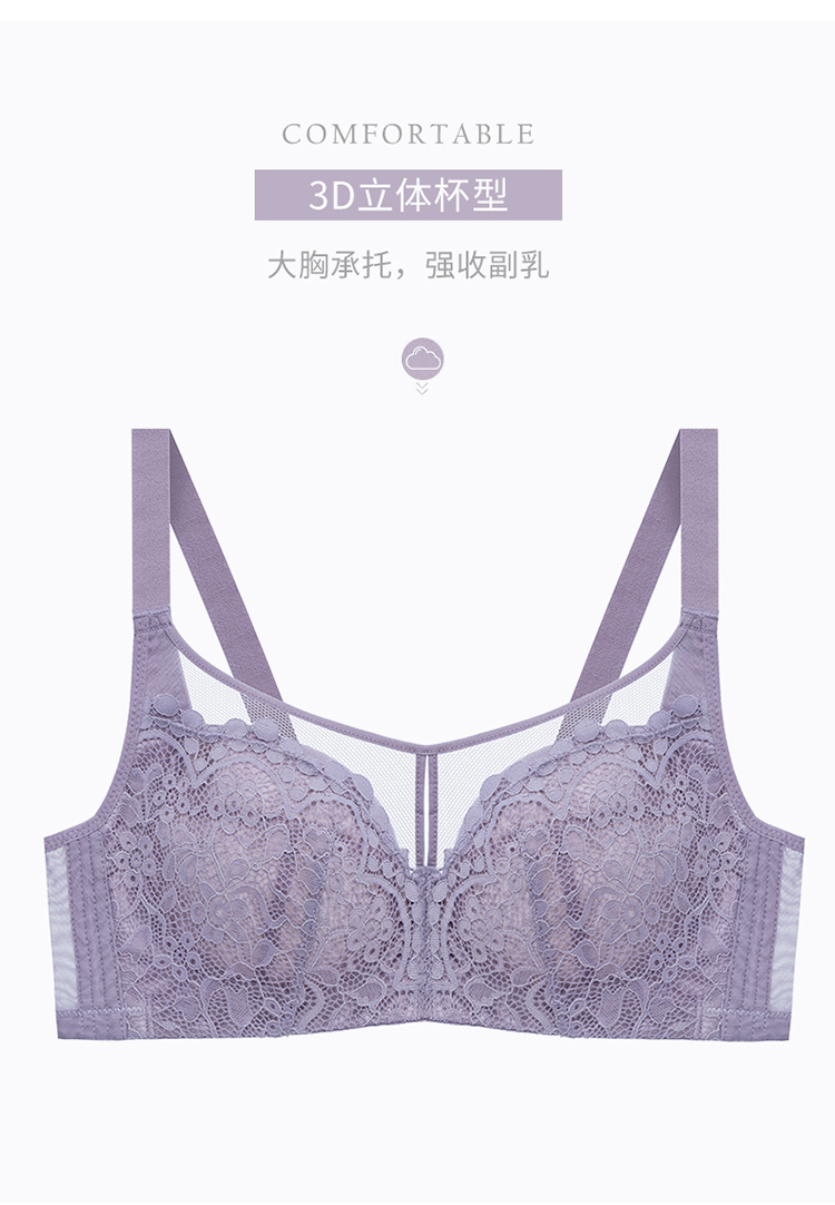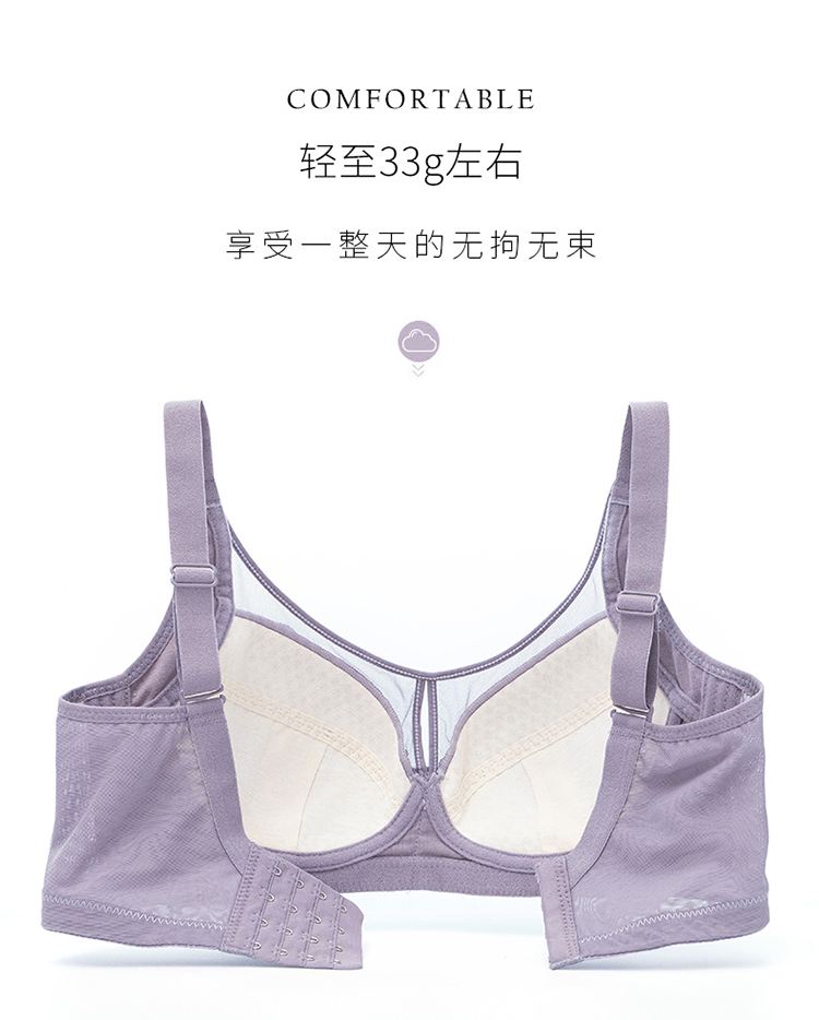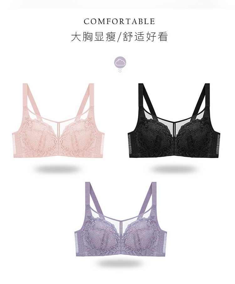内衣女大胸显小无钢圈超薄款全罩杯收副乳聚拢文胸罩夏季上托大码