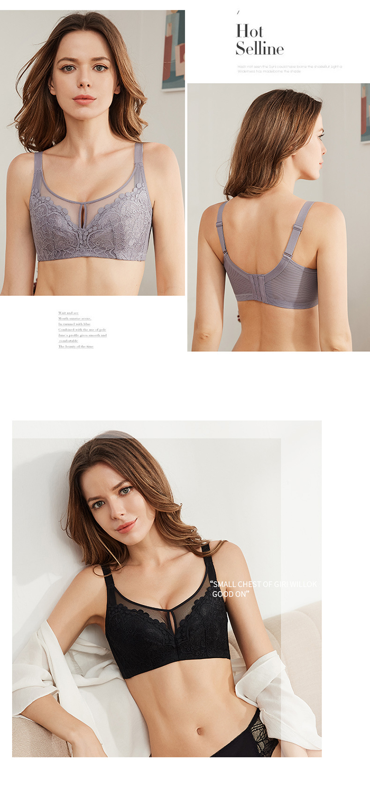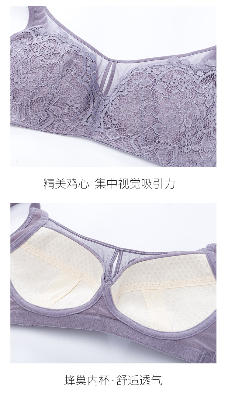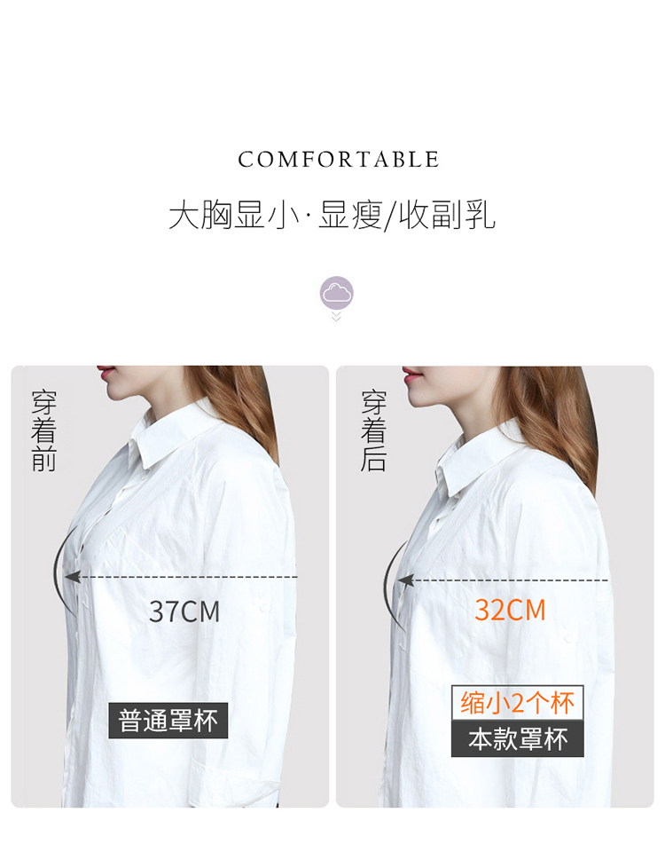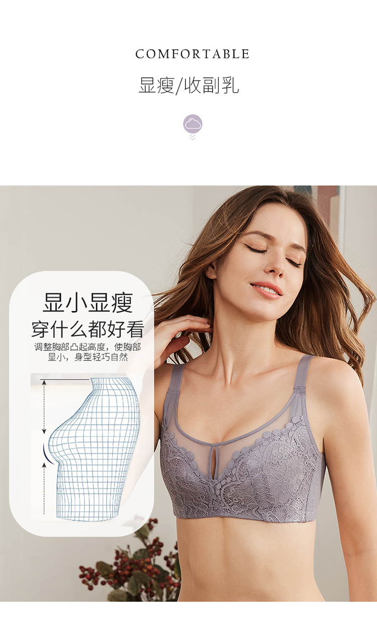 内衣女大胸显小无钢圈超薄款全罩杯收副乳聚拢文胸罩夏季上托大码