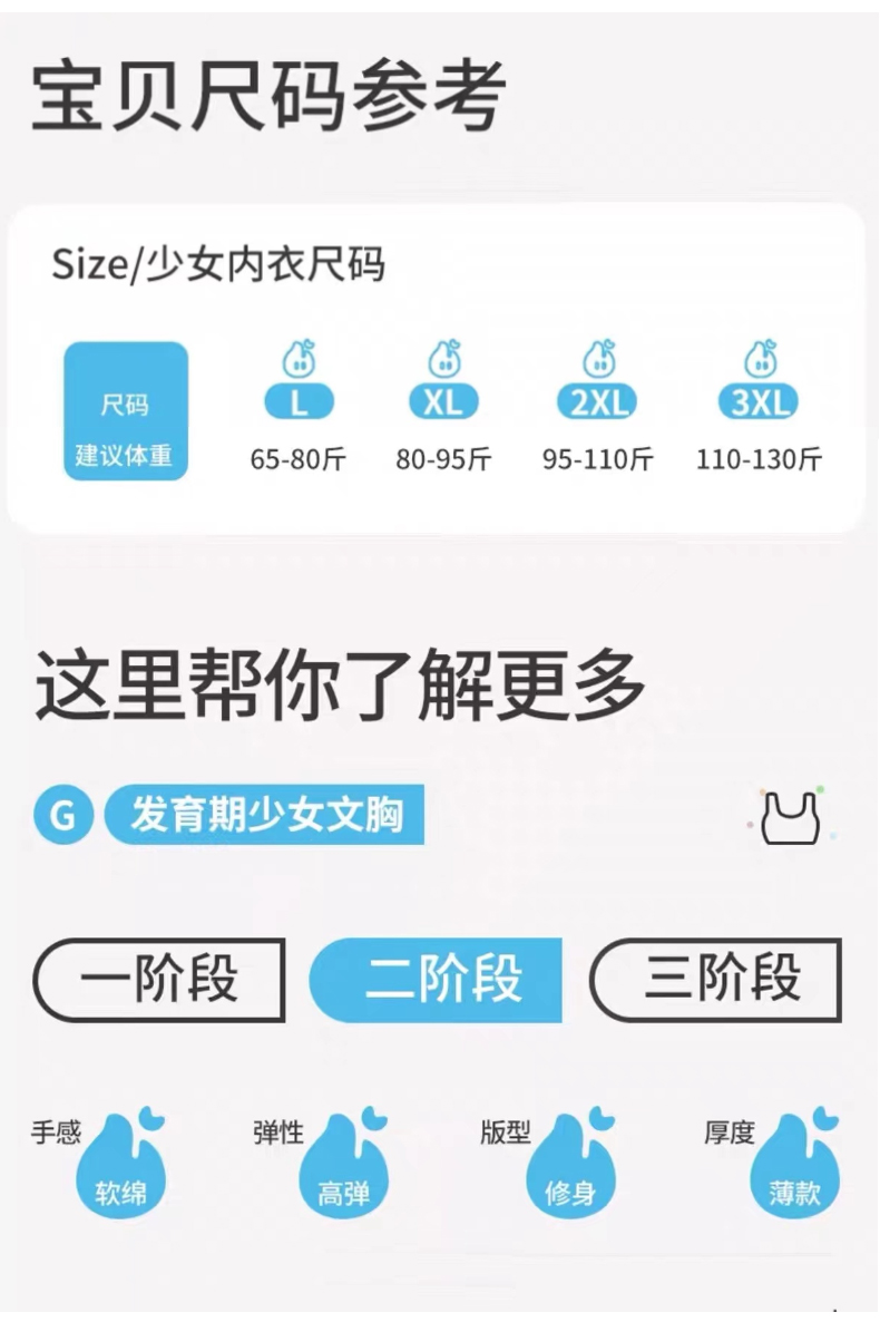 少女文胸二阶段夏季薄款女大童初高中生学生内衣青春发育期运动