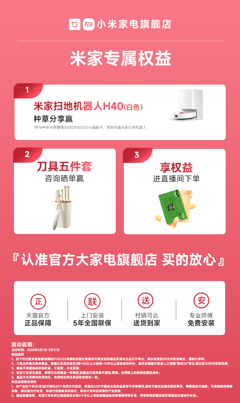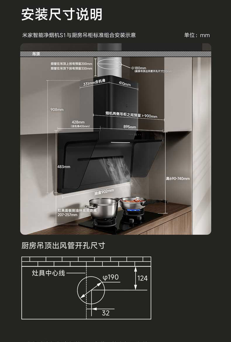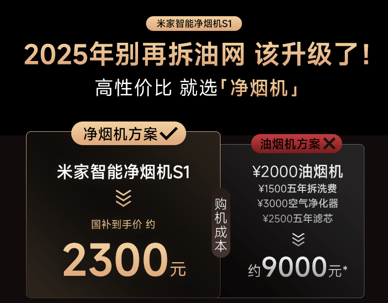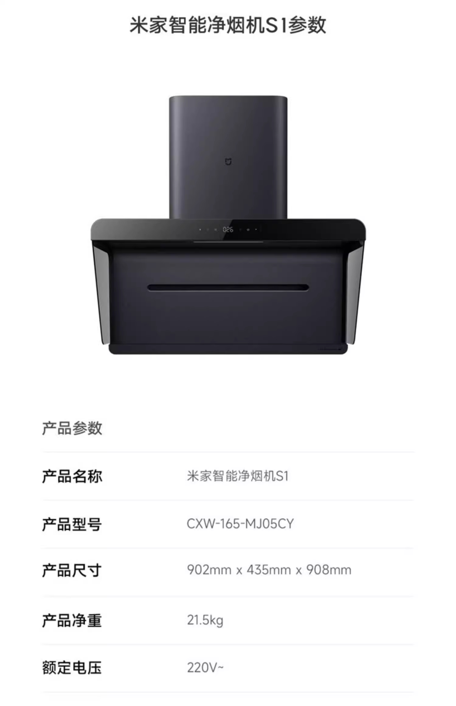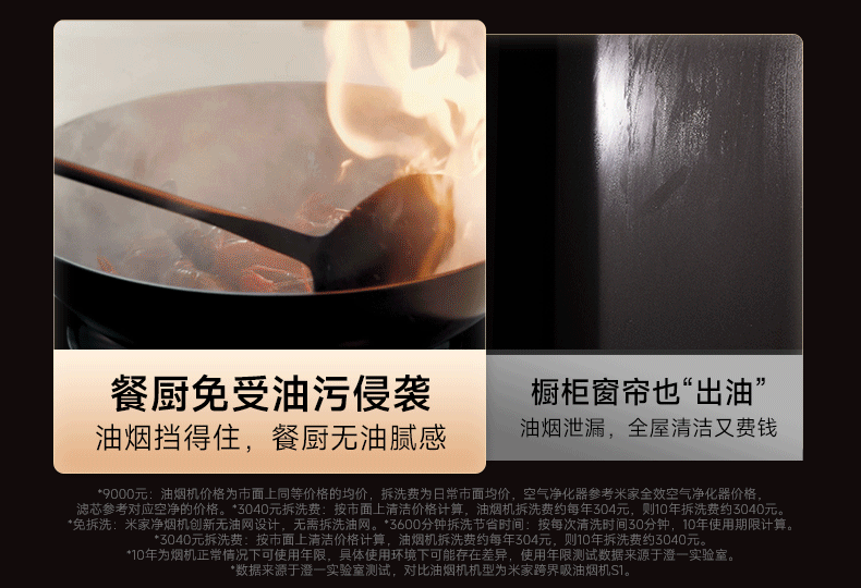 小米米家智能油烟机S1家用厨房抽油烟机侧吸大吸力免拆洗净烟机