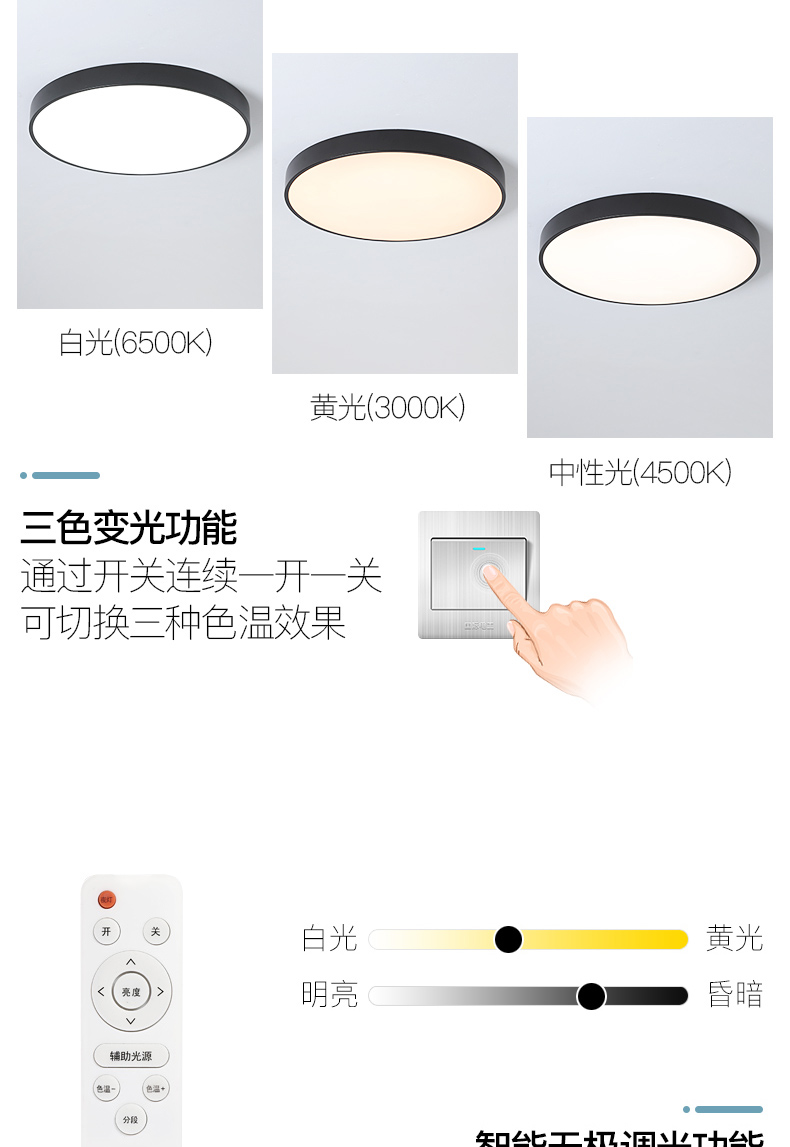 led卧室灯吸顶灯客厅灯圆形简约现代大气超薄餐厅阳台过道灯具