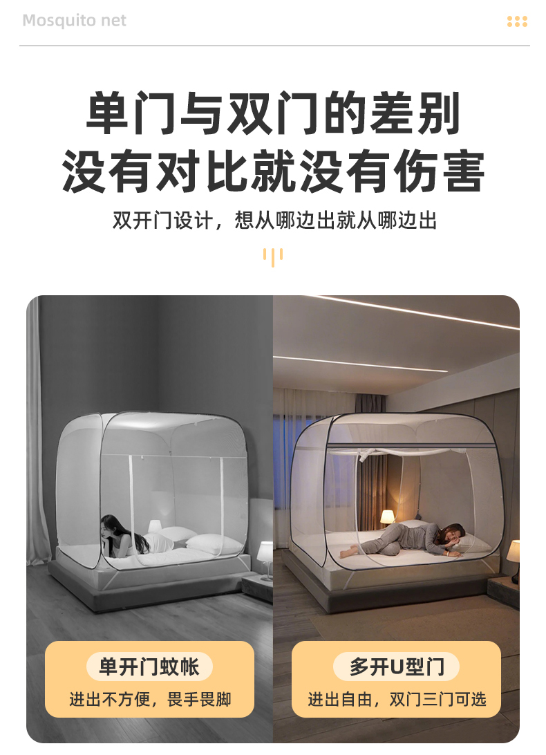 蒙古包蚊帐免安装家用2025新款防摔儿童全底卧室帐篷方便拆洗折叠