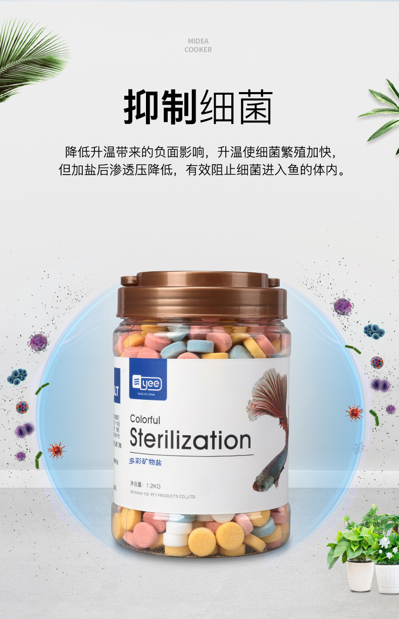 yee鱼缸专用杀菌盐水族观赏鱼用海盐杀菌抗菌盐矿物黄粉水质消毒