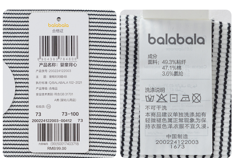 巴拉巴拉女童背心婴儿宝宝条纹打底衫夏装新款外穿潮200224122003
