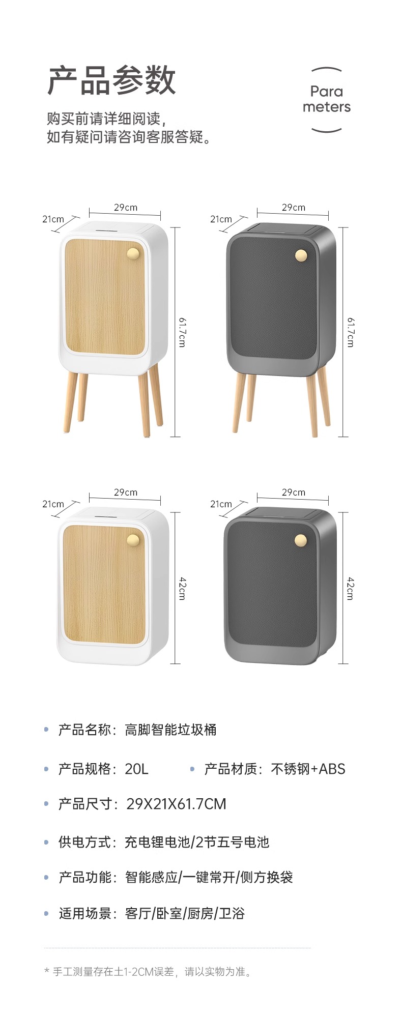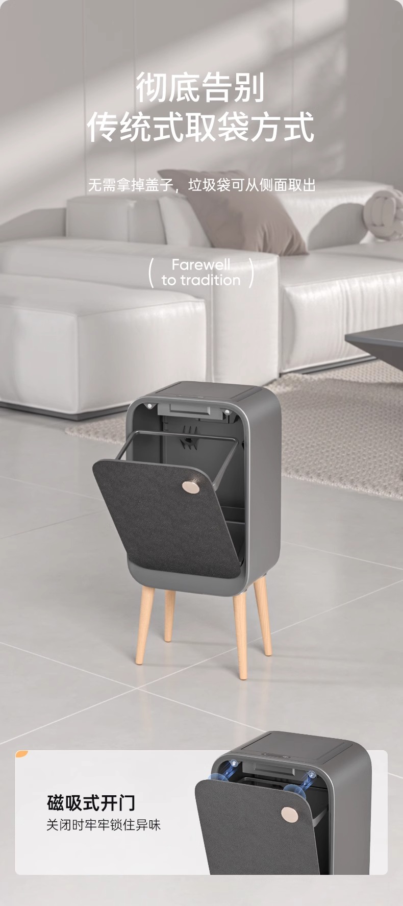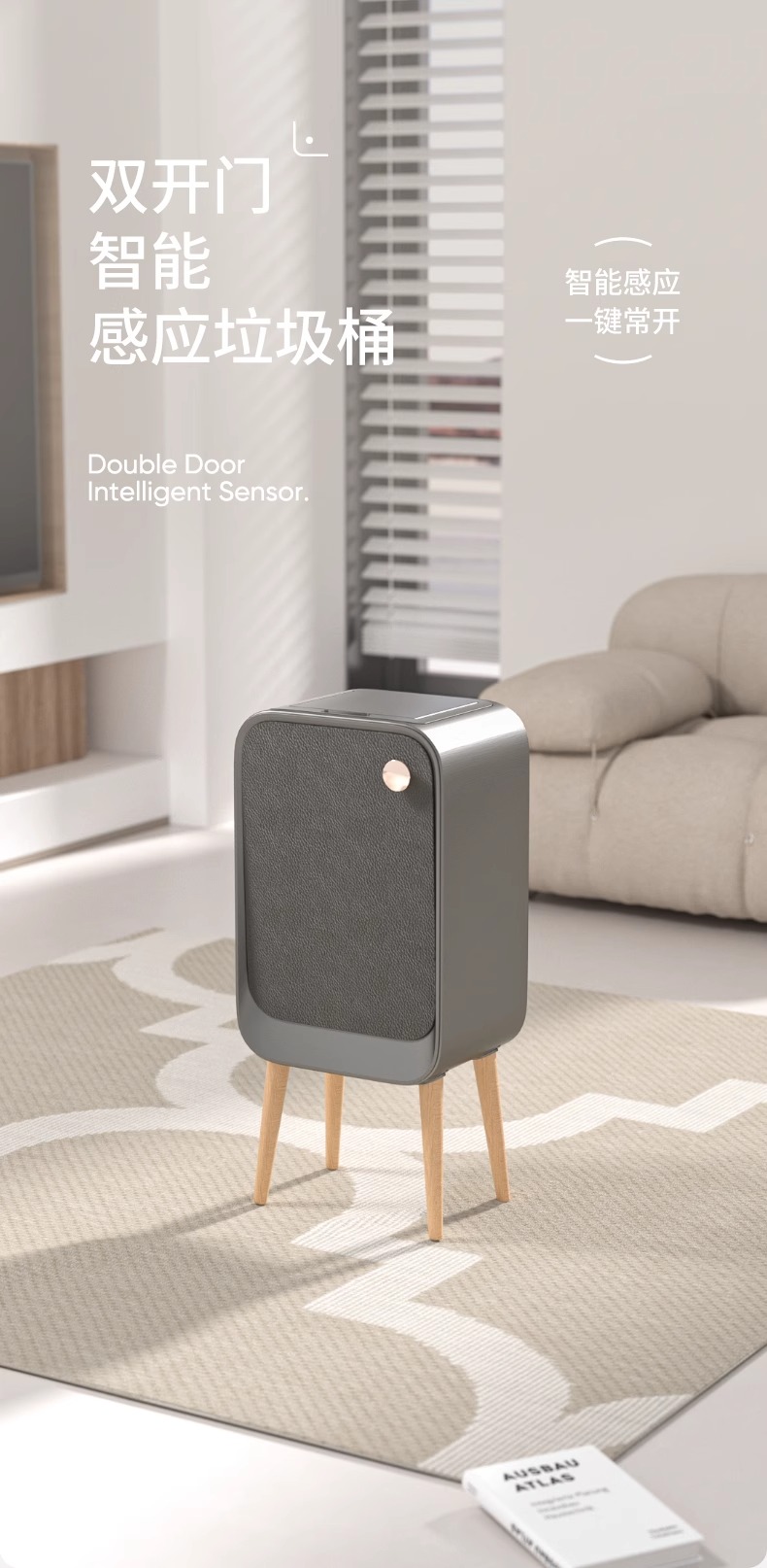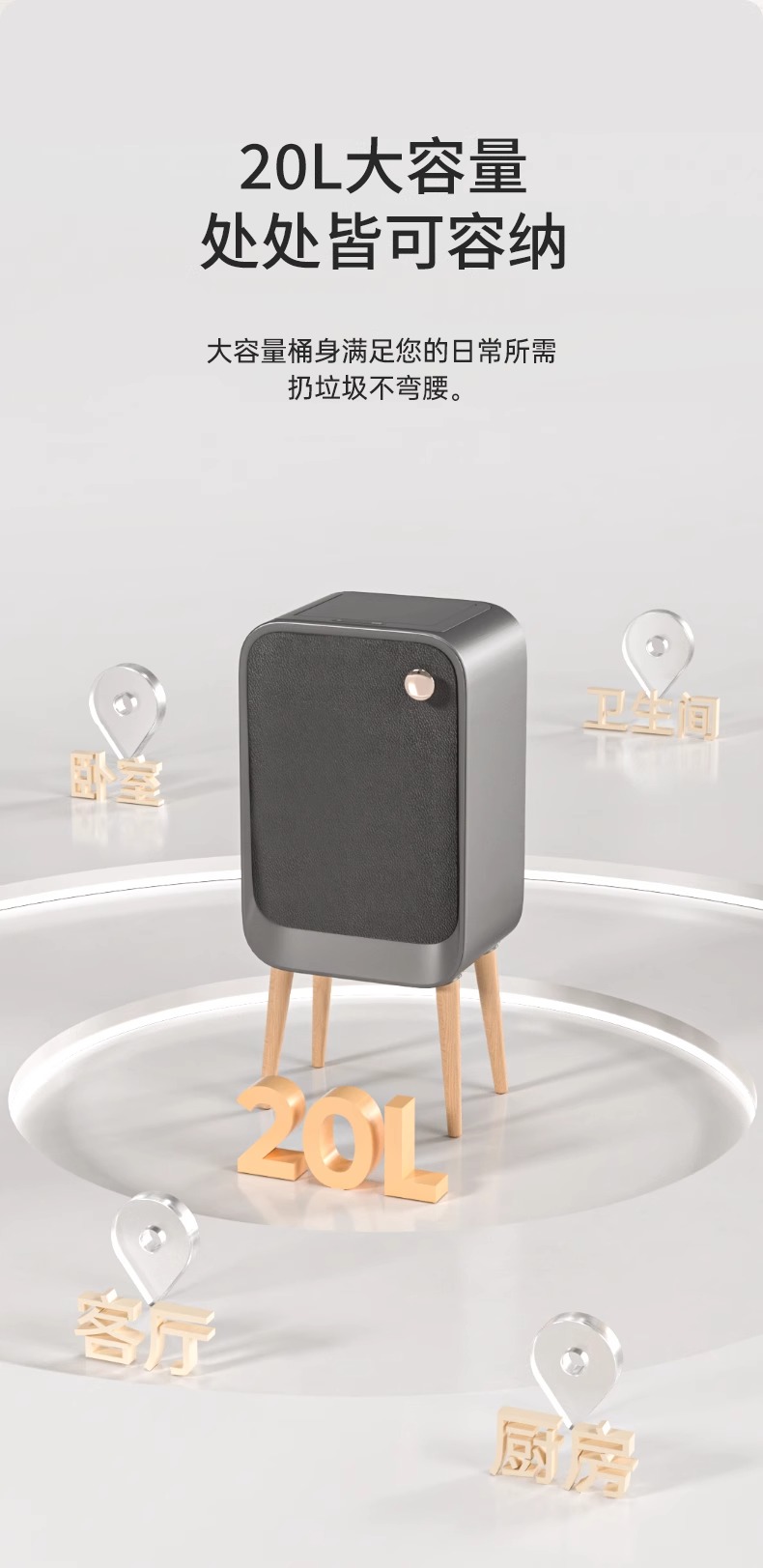 智能轻奢高级新款电动感应不锈钢高脚高档垃圾桶家用客厅高颜值大