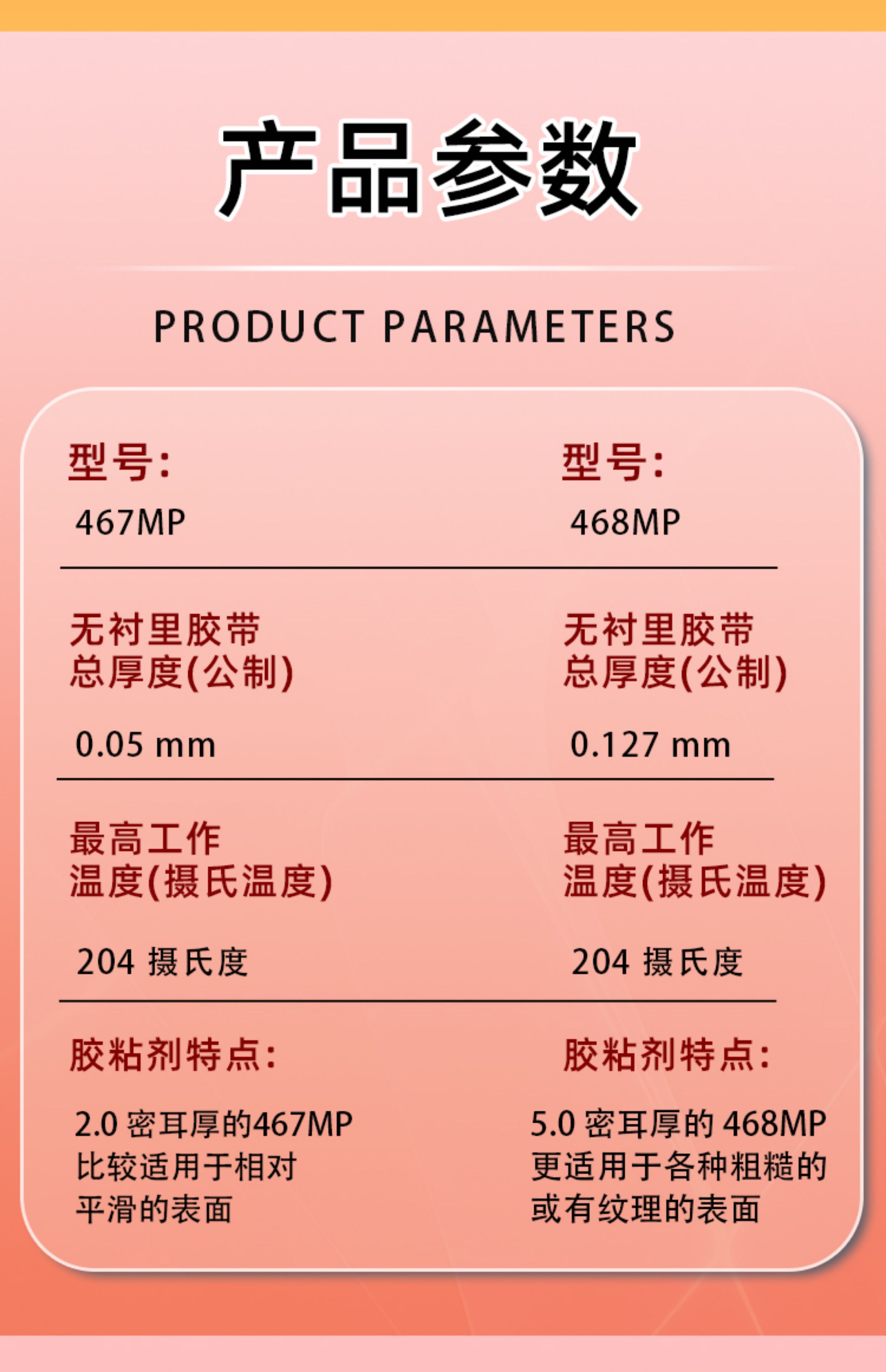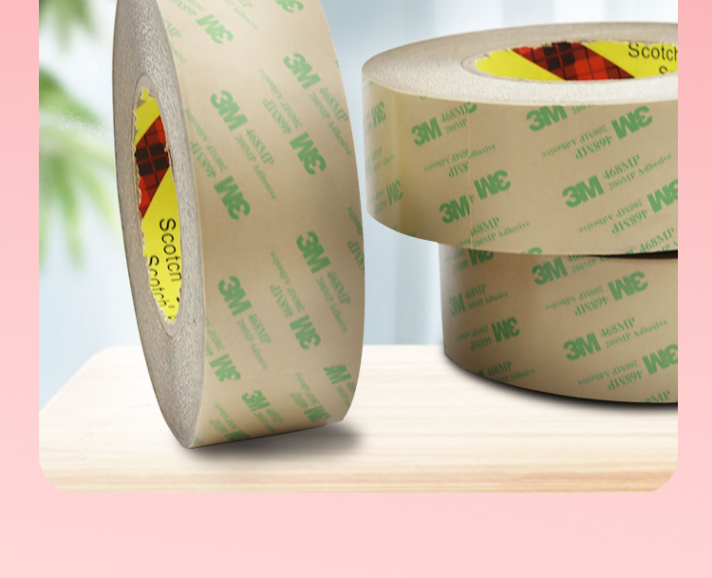 3M 468MP双面胶高粘度透明胶带薄款耐温无痕无基材467MP双面胶带
