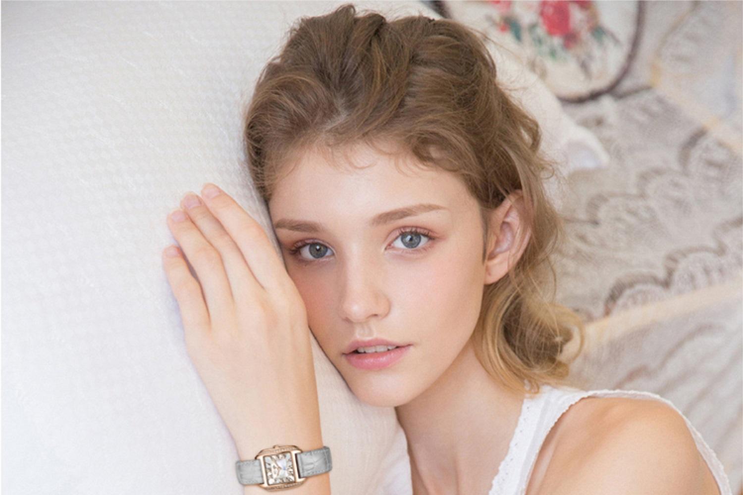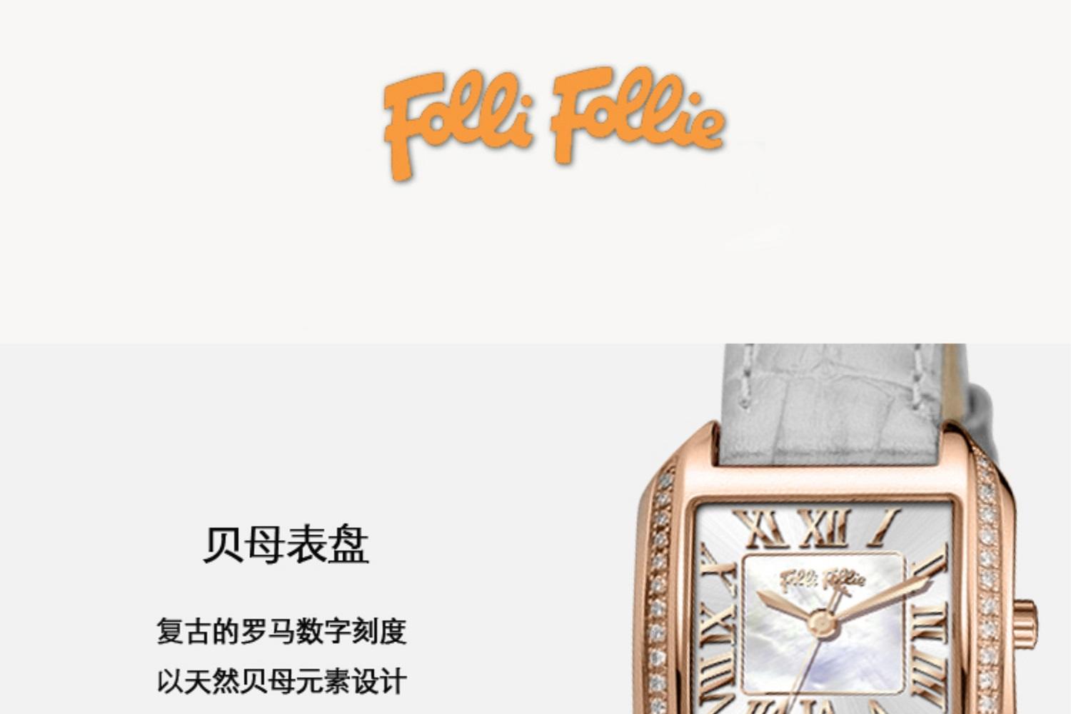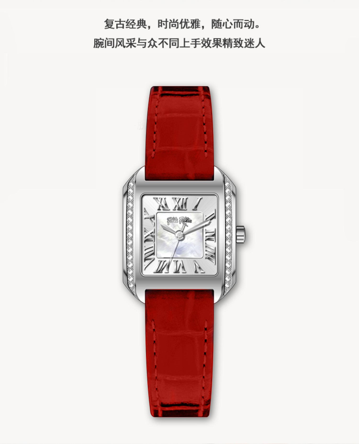 follifollie2023新款时尚优雅轻奢真皮贝母腕表进口石英女手表