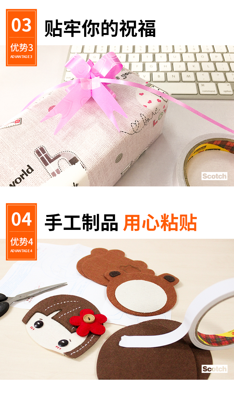 3M Scotch 思高 双面胶带200C棉纸胶带6/12/18/24mm*10m 强粘力