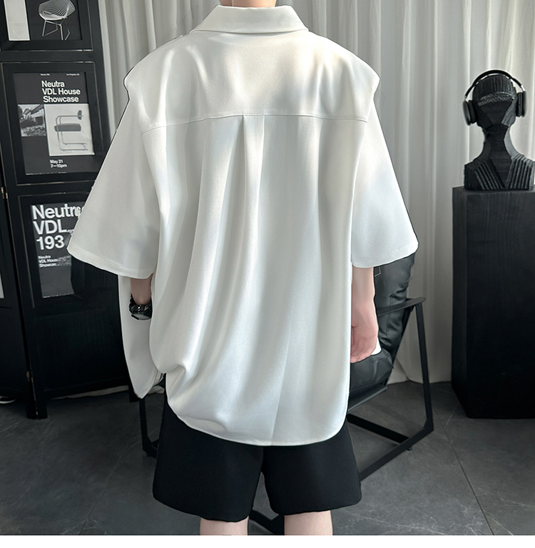 古巴领假两件短袖衬衫男高级感设计感小众痞帅上衣夏季半袖衬衣薄