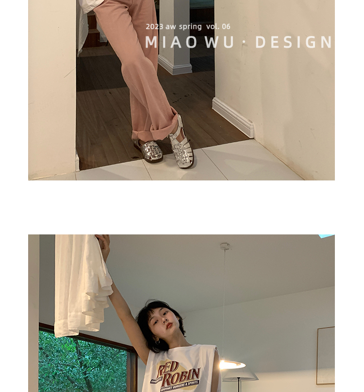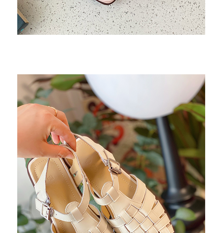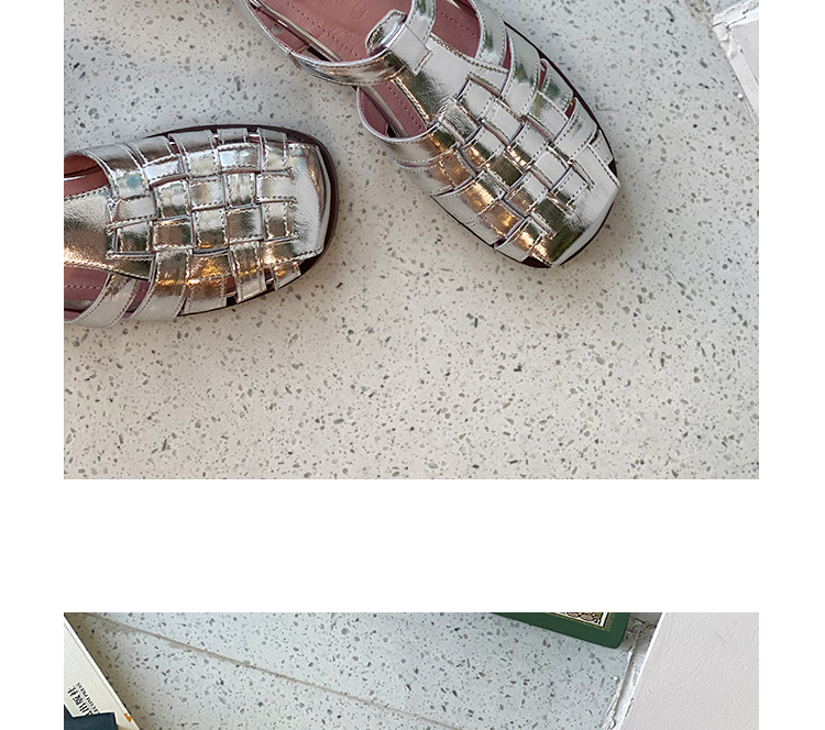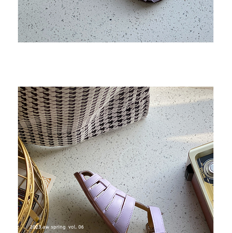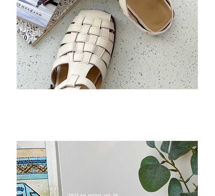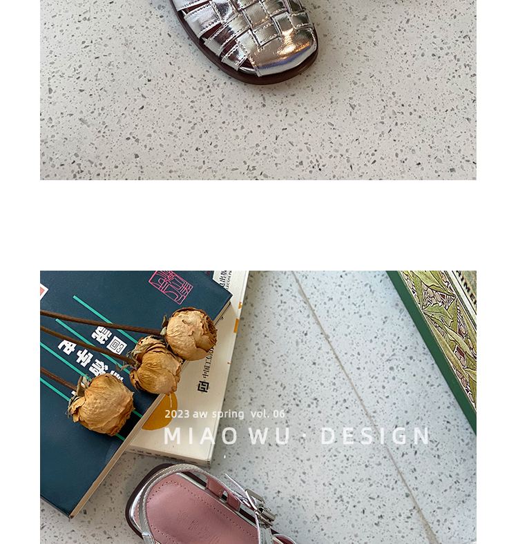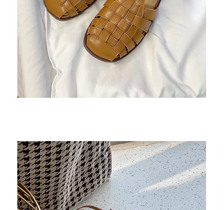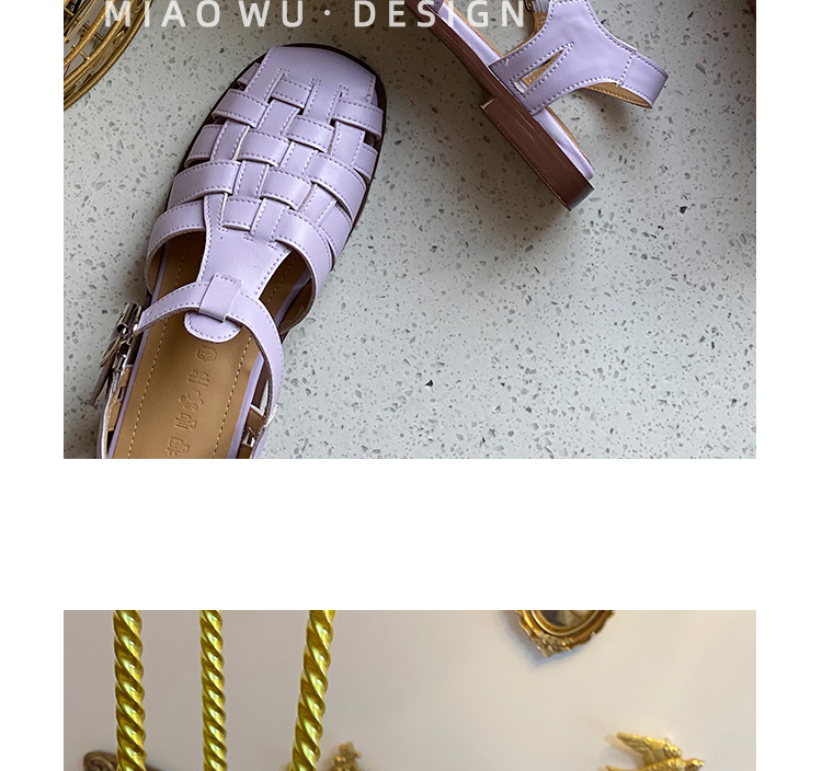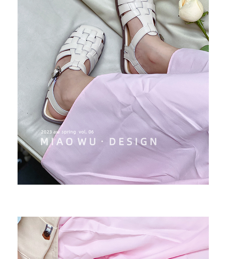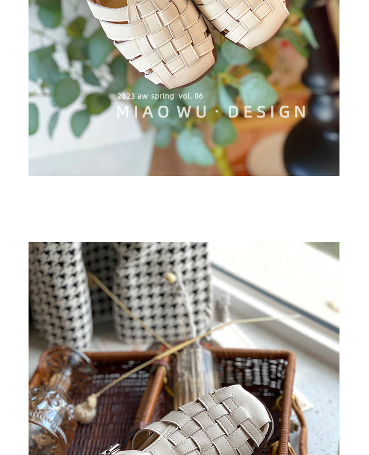 喵唔的天空包头罗马凉鞋女春夏编织平底一字扣镂空通勤沙滩鞋