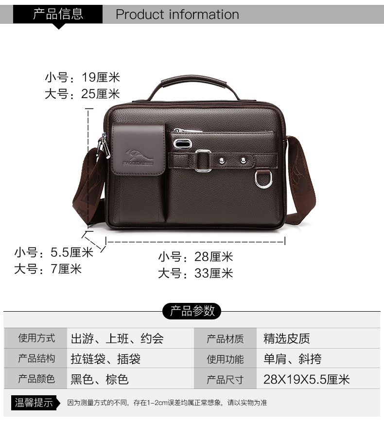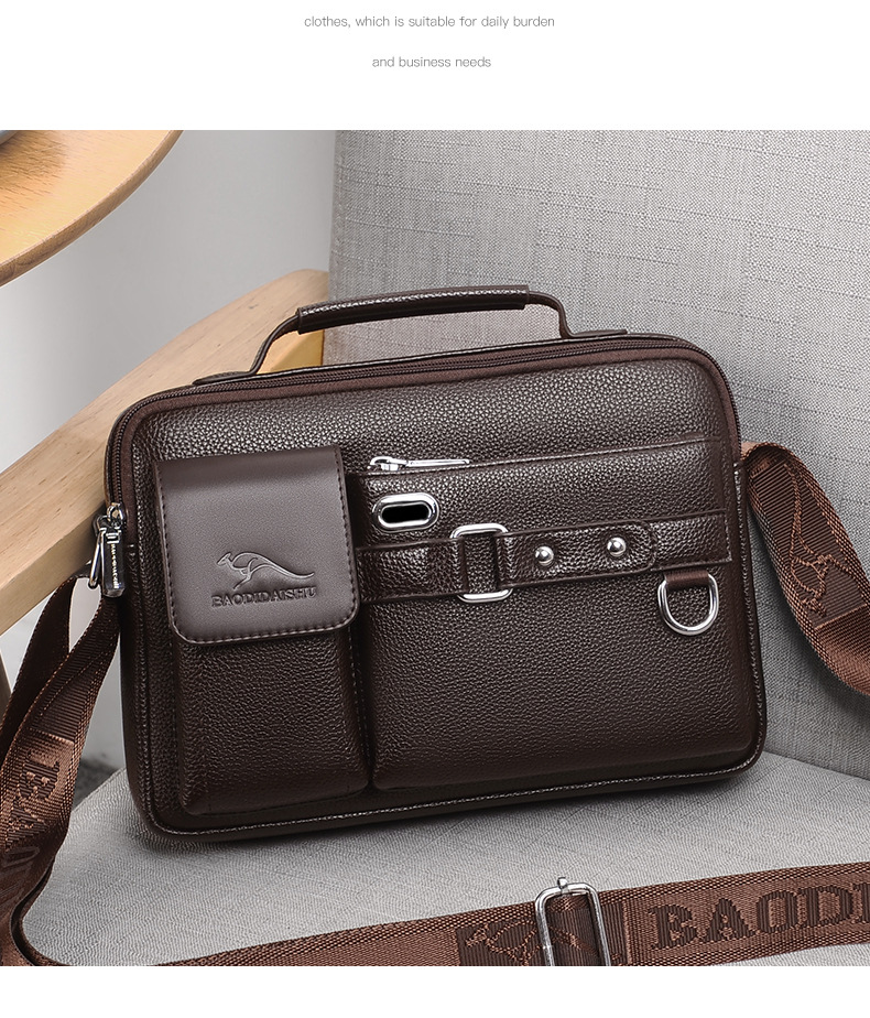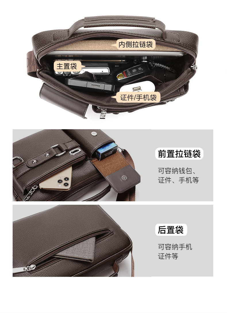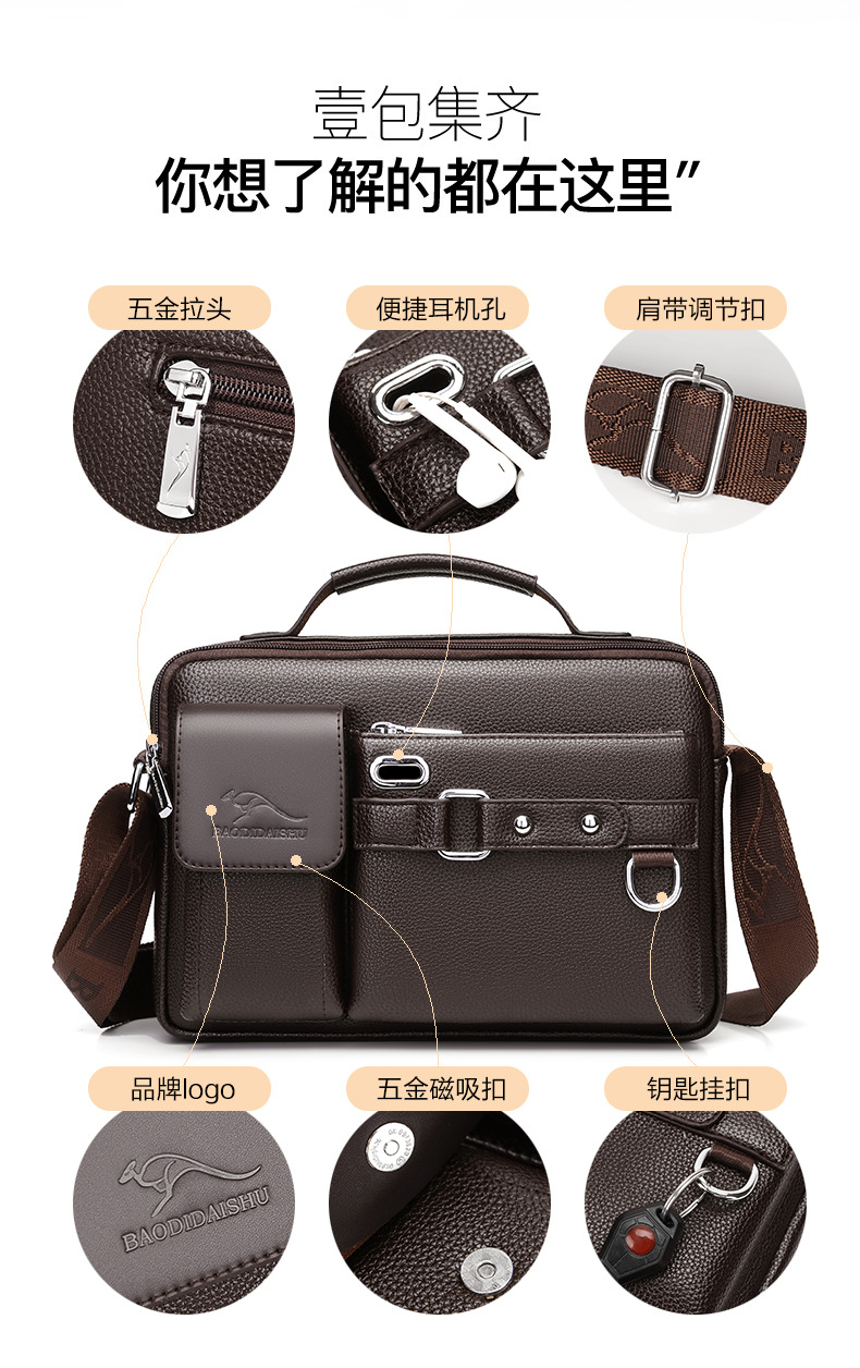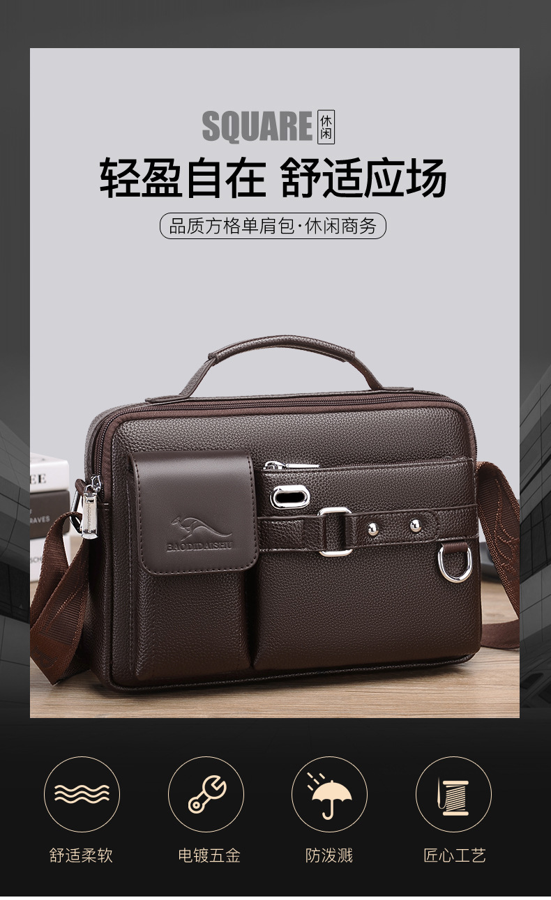 单肩包斜挎包男款真皮男士商务休闲横款牛皮公文包男款手提包背包