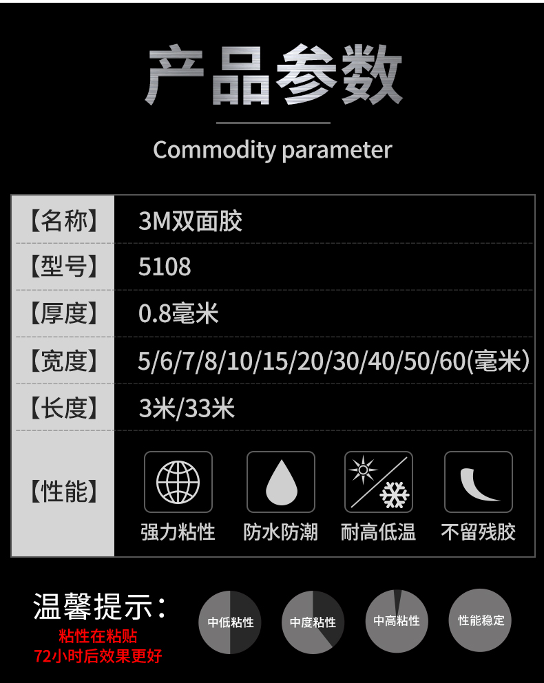 3m双面胶强力高粘度无痕固定汽车尾翼不留痕泡棉泡沫防水耐高温泡沫泡棉胶带汽车专用两面胶5108 30米长