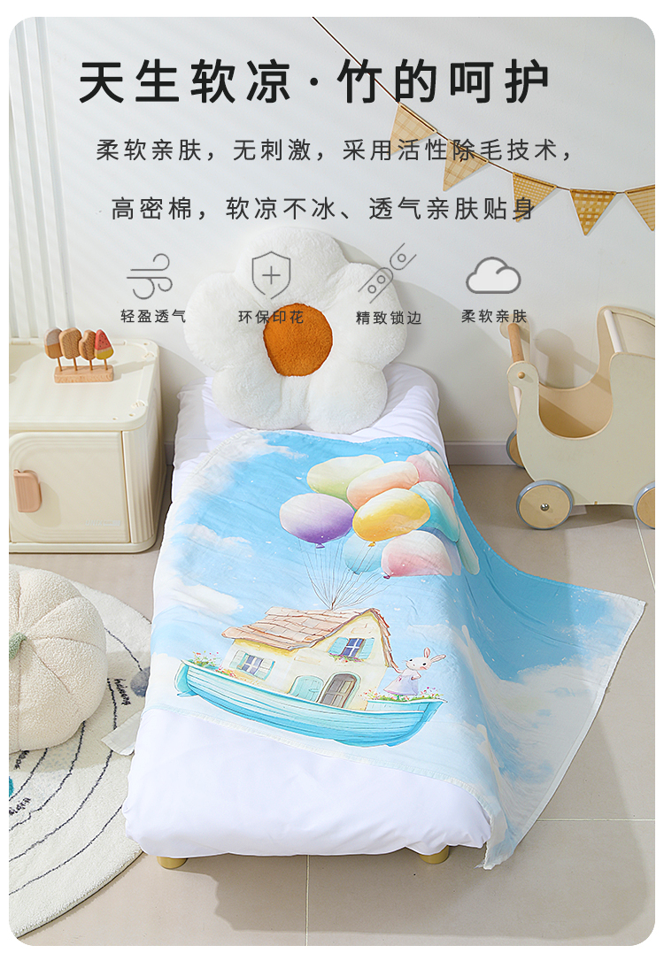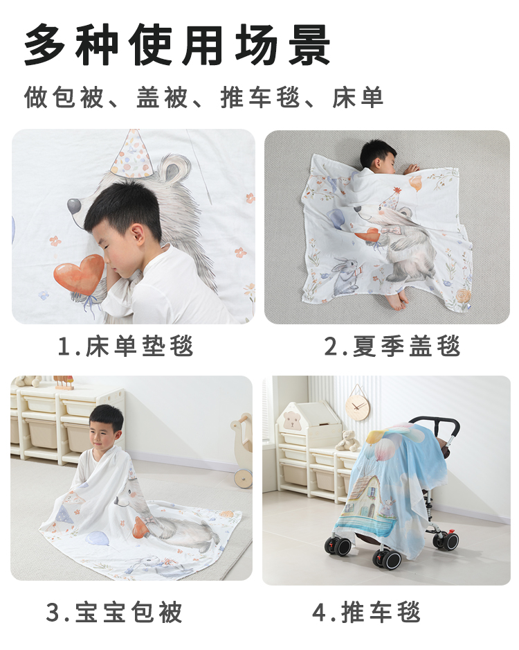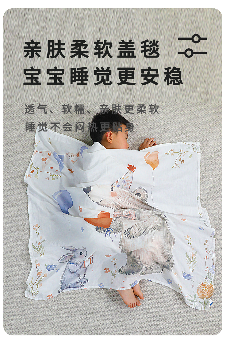 婴儿专用盖毯儿童凉感被子冰丝毯竹棉薄款纱布夏季宝宝空调被a类