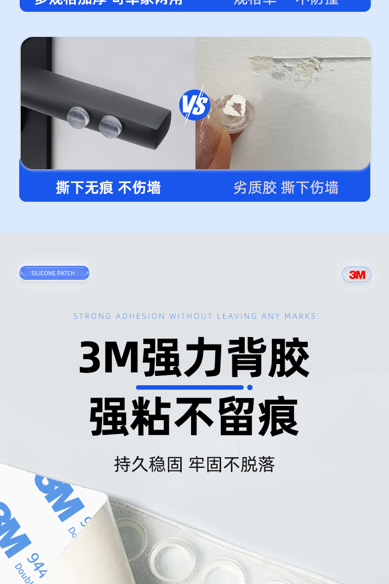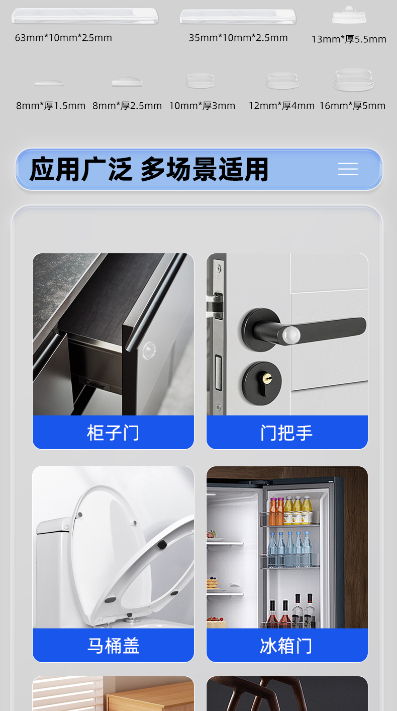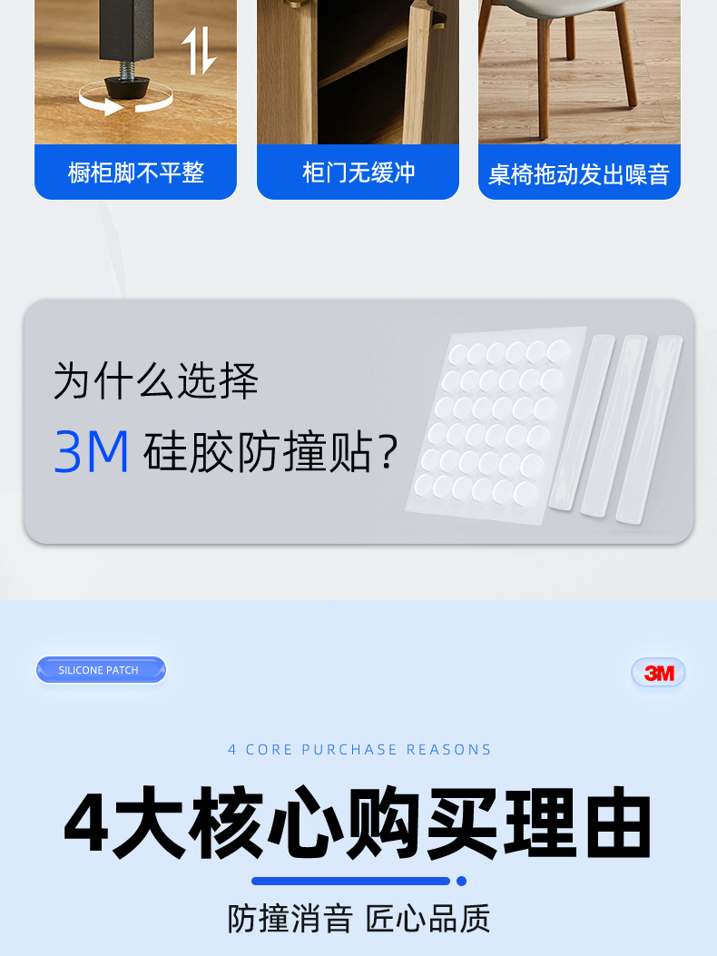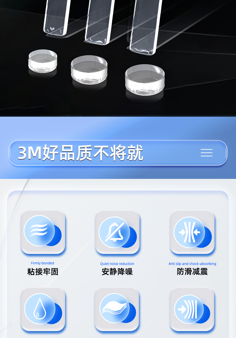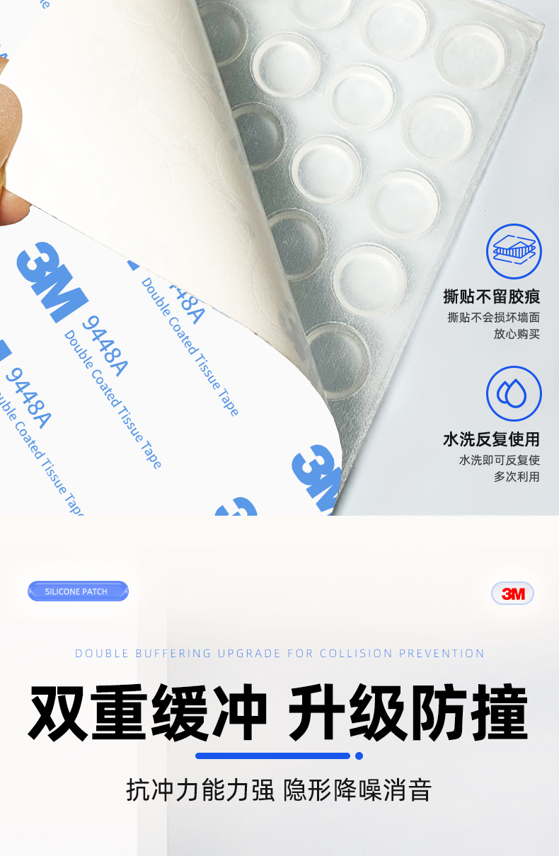 3m门后防撞硅胶透明消音门把手静音神器颗粒凳子防滑垫家具防磨贴