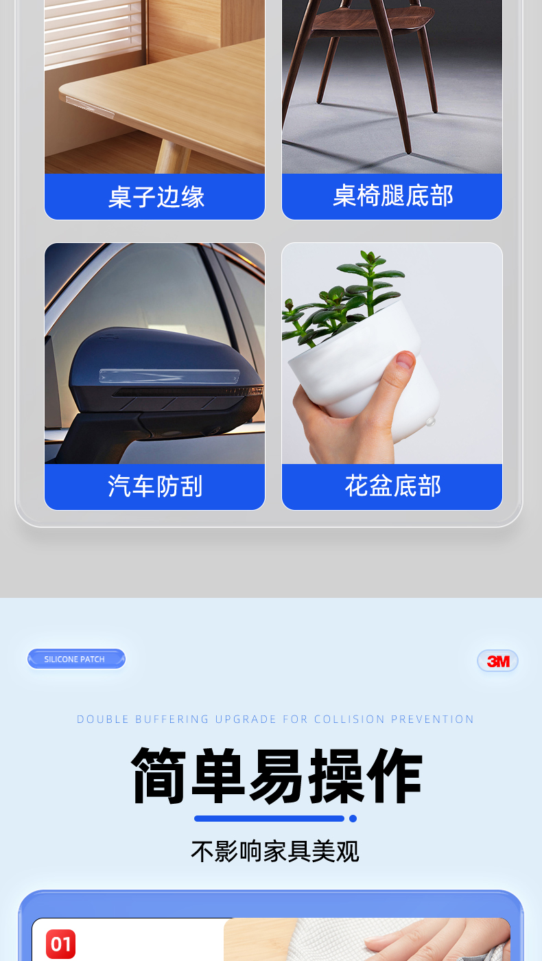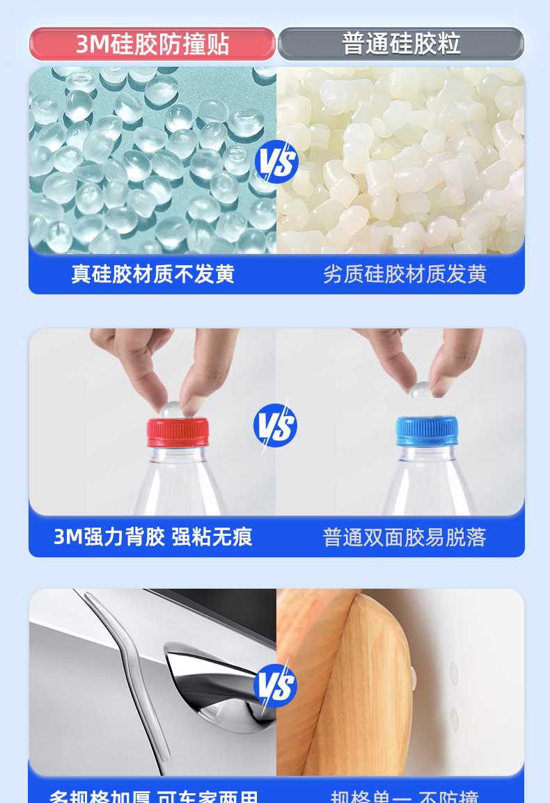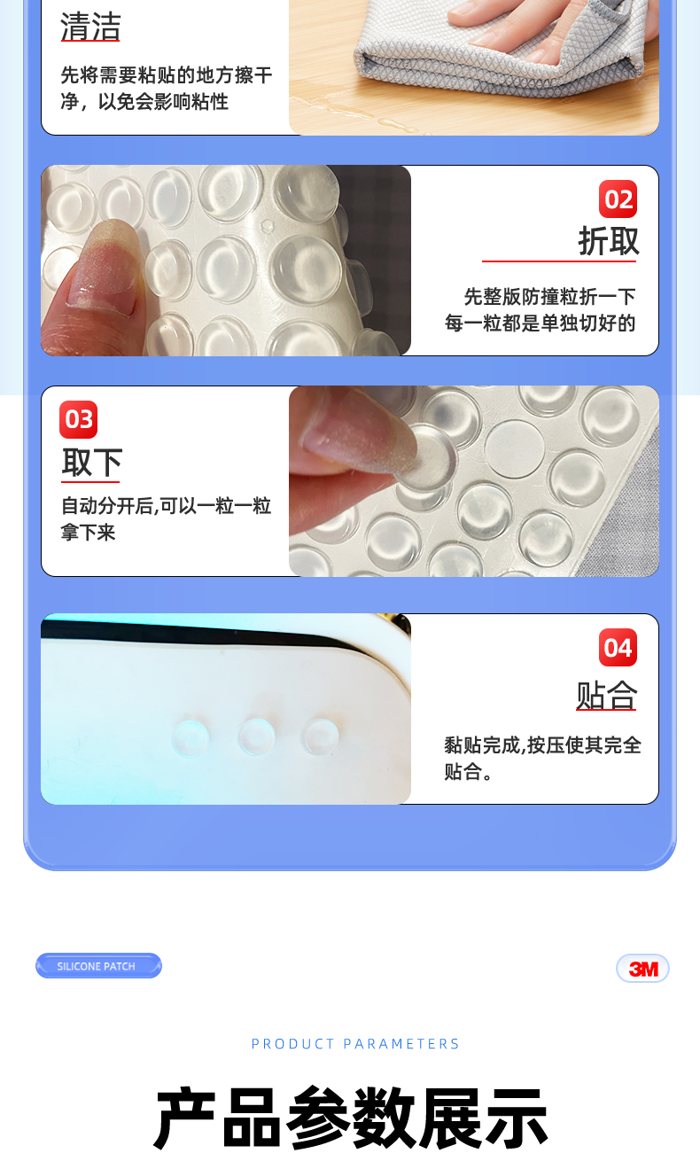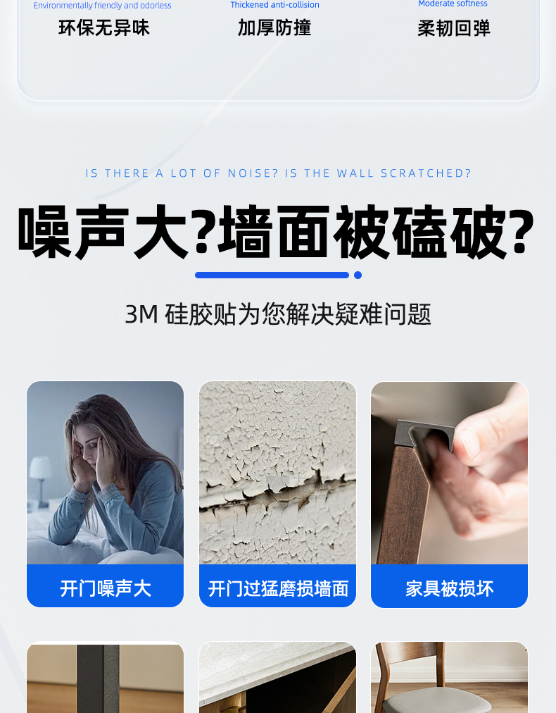 3m门后防撞硅胶透明消音门把手静音神器颗粒凳子防滑垫家具防磨贴