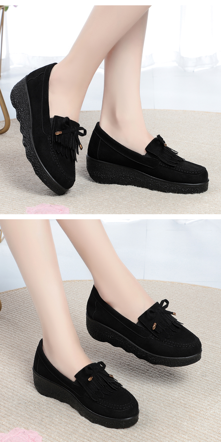 老北京布鞋春夏网红一脚蹬坡跟豆豆鞋女单鞋防滑软底防水跟工作鞋