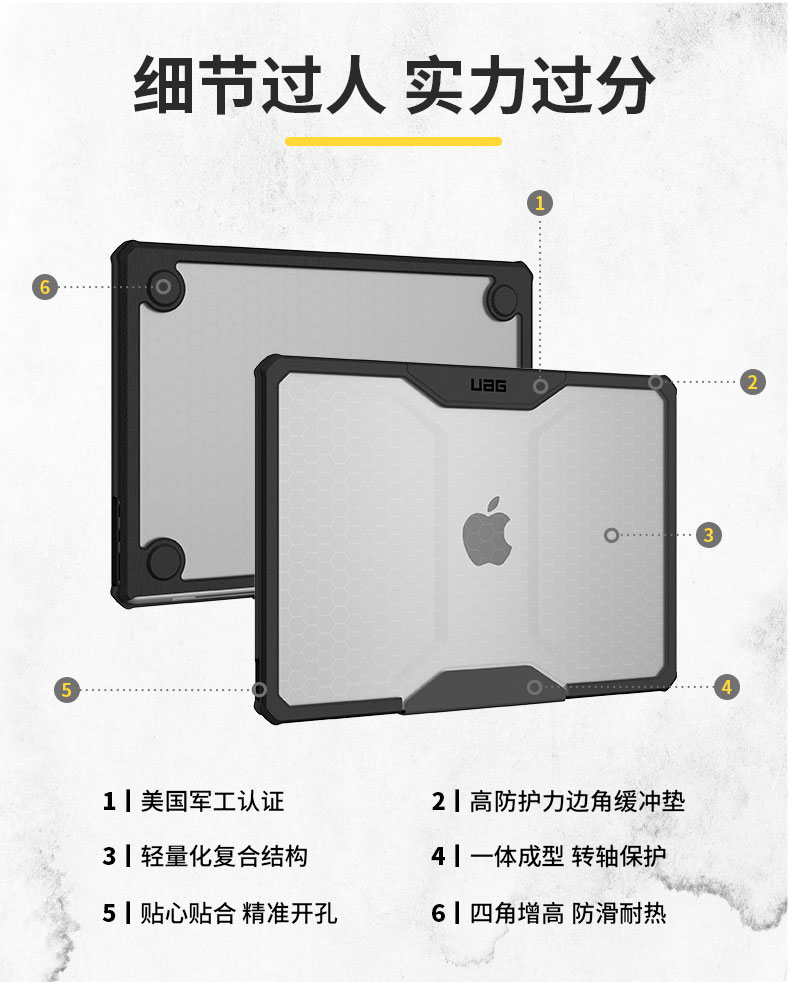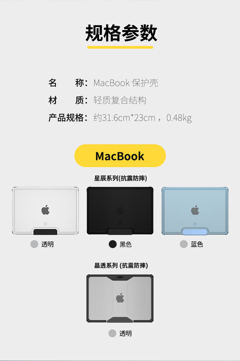 UAG适用MacBookPro保护套14寸M4/3苹果Air14寸电脑16寸防摔保护壳笔记本全包透明M4硬壳