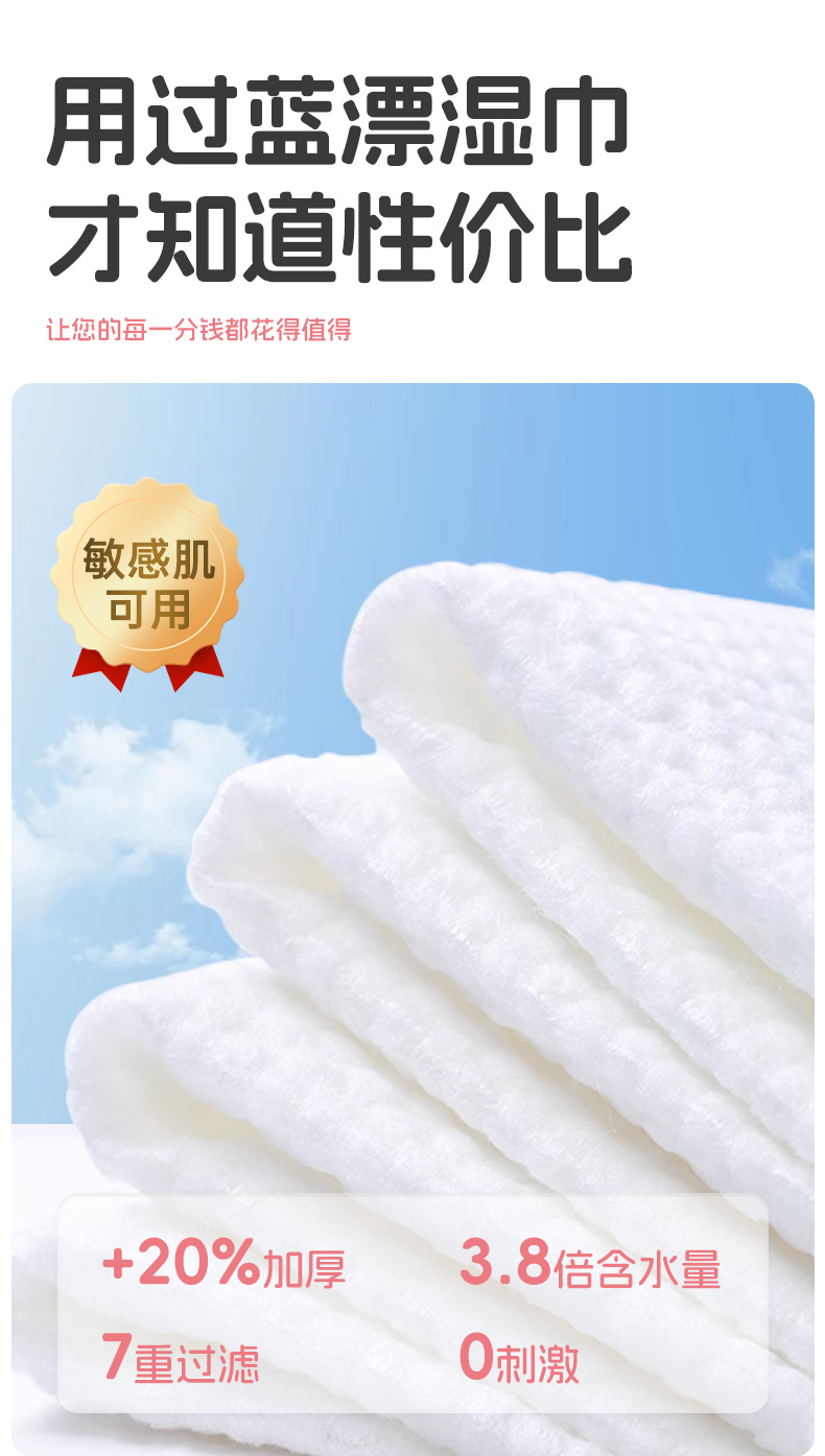 蓝漂大包80抽婴儿湿巾纸宝宝手口屁专用湿纸巾家庭实惠装无酒精