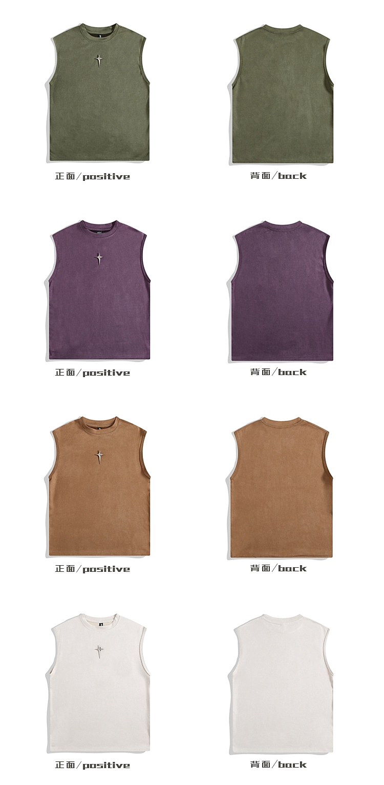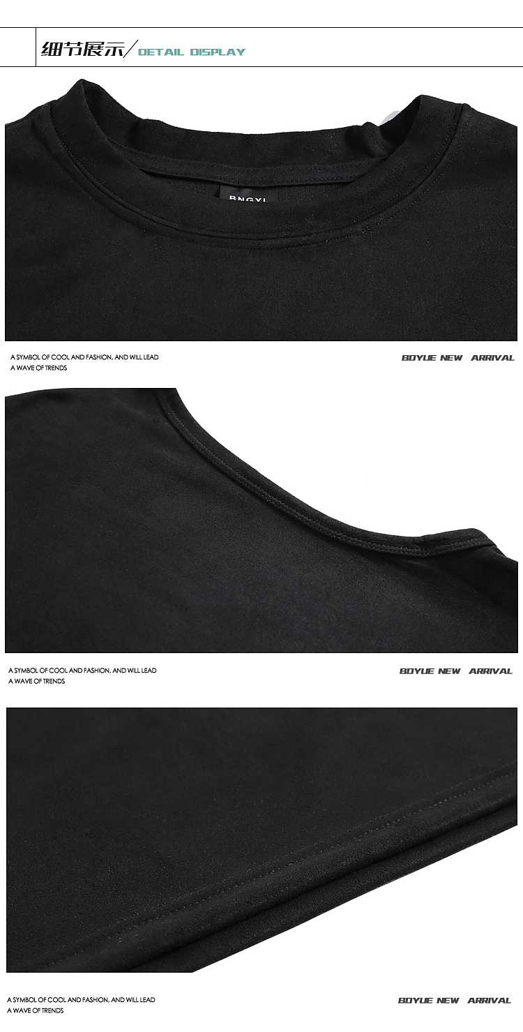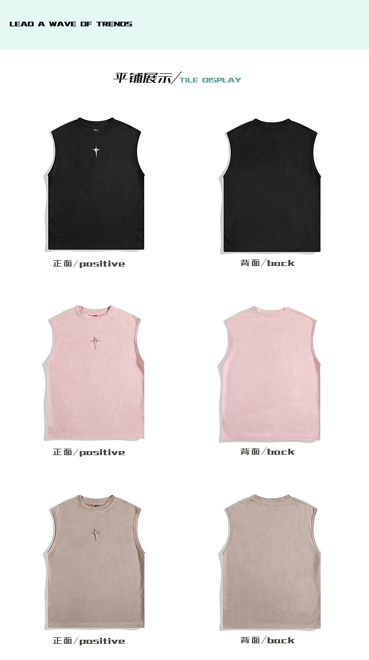 BOYUE帛跃美式麂皮绒背心甜酷无袖运动粉色潮牌外穿个性百搭T恤男