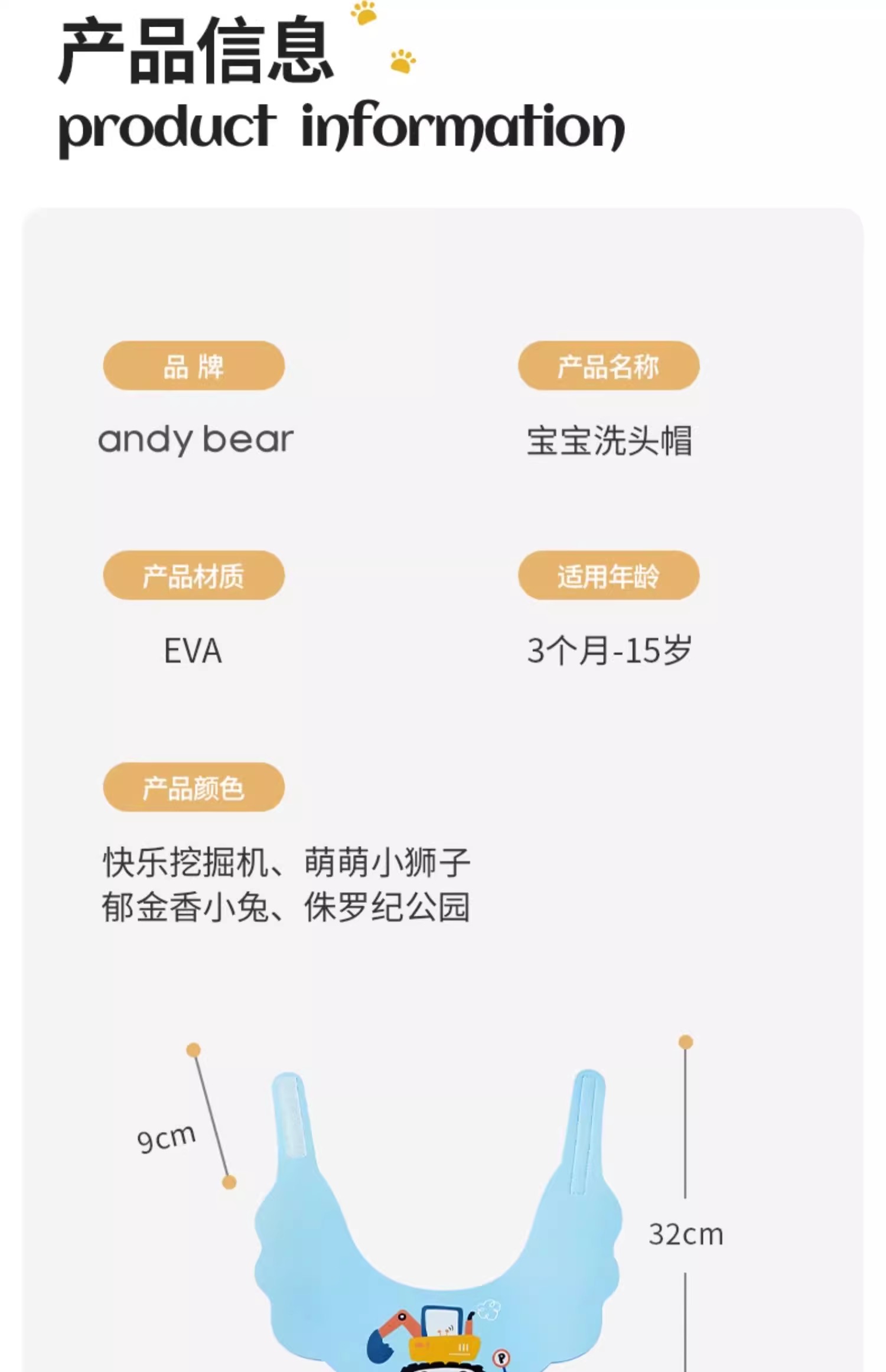 包邮】爱贝迪拉儿童洗头帽挡水帽婴儿洗头发防水护耳浴帽洗发帽子